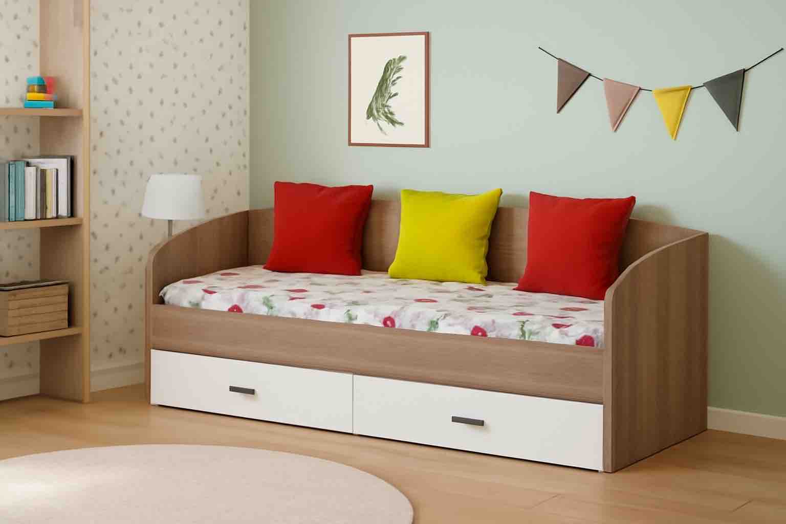Данная модель кровати выполнена в современном дизайне, превосходно дополнит интерьер детской комнаты.
