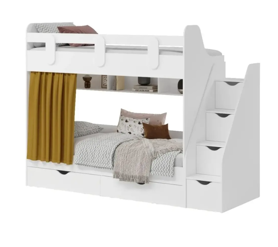 ЛДСП Е0,5. Толщина 16 мм. КРОВАТЬ ДОСТУПНА В ДЕКОРАХ: полностью белый, серебро + белый, дуб сонома + белый, гаскон пайн + белый, дуб золотистый + белый, велюр + белый