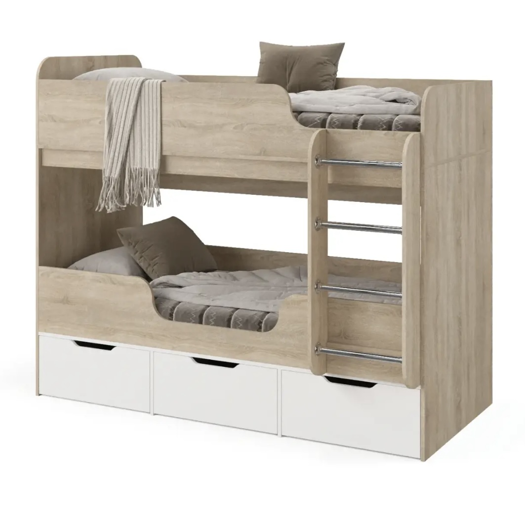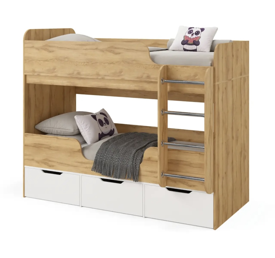 Компактная двухъярусная кровать Малыши Двойняшки создана специально для небольших помещений.