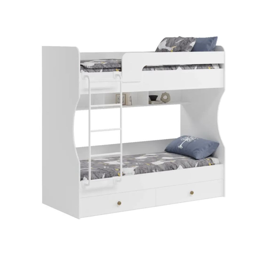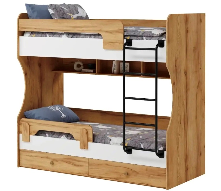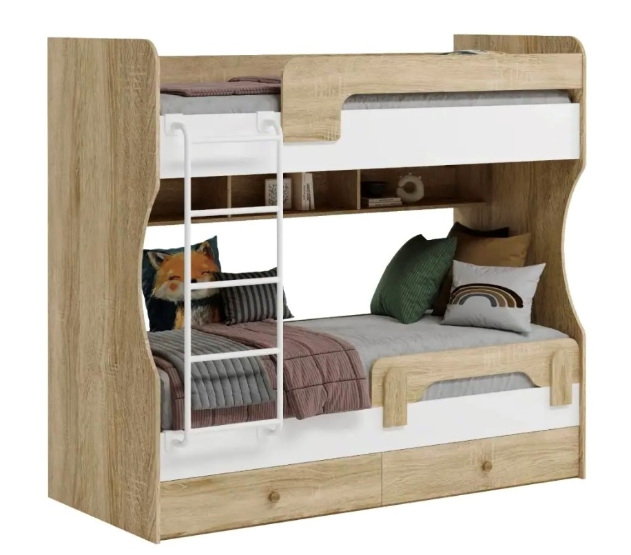 ЛДСП Е0,5. Толщина 16 мм. КРОВАТЬ ДОСТУПНА В ДЕКОРАХ: полностью белый, дуб сонома + белый, дуб каньон + белый, дуб золотистый + белый, велюр + белый
