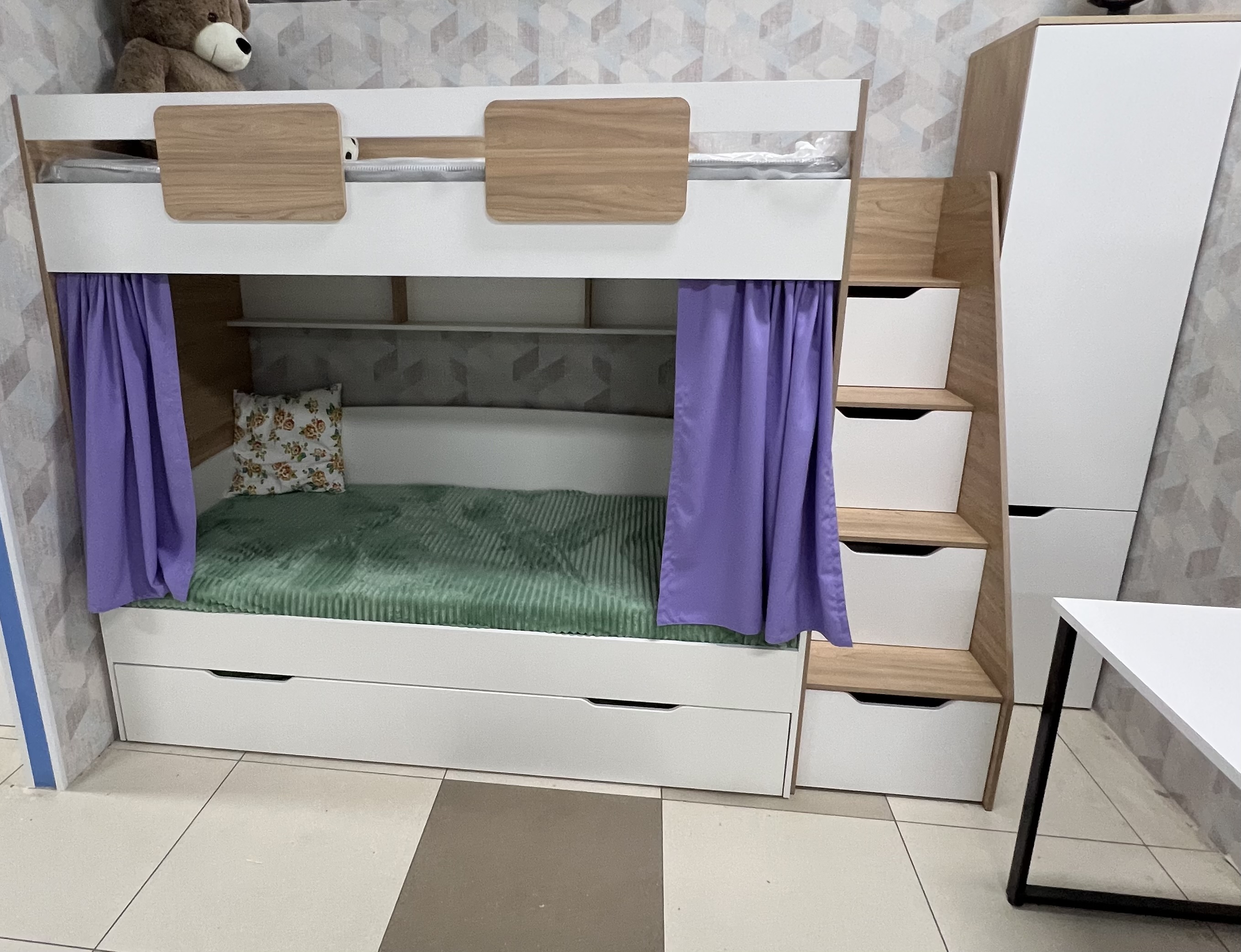 Высота матраца для нижней кровати не более 15 см.