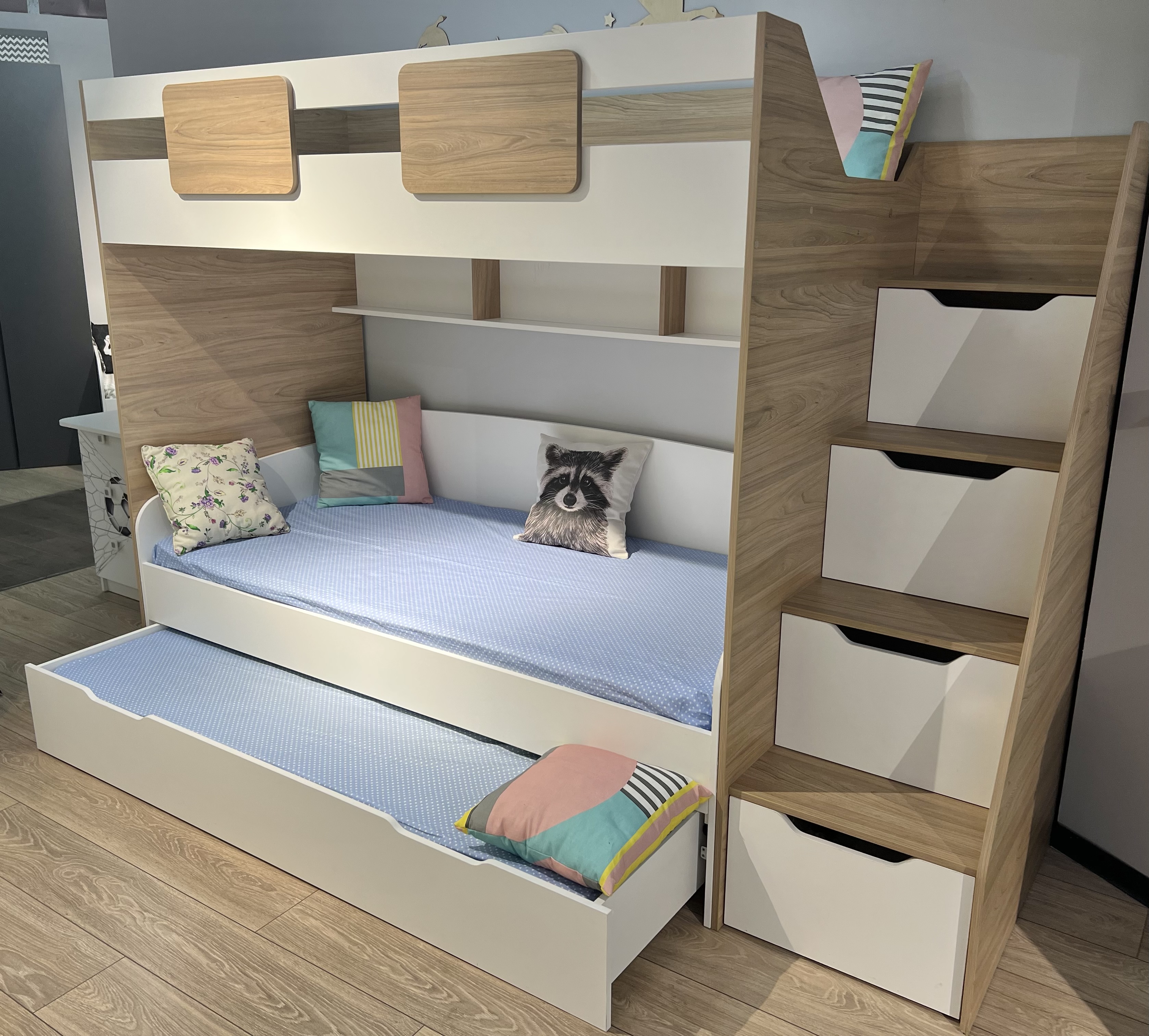 Высокая нагрузка на спальные места. Высокий, безопасный борт. Прочные ящики! |