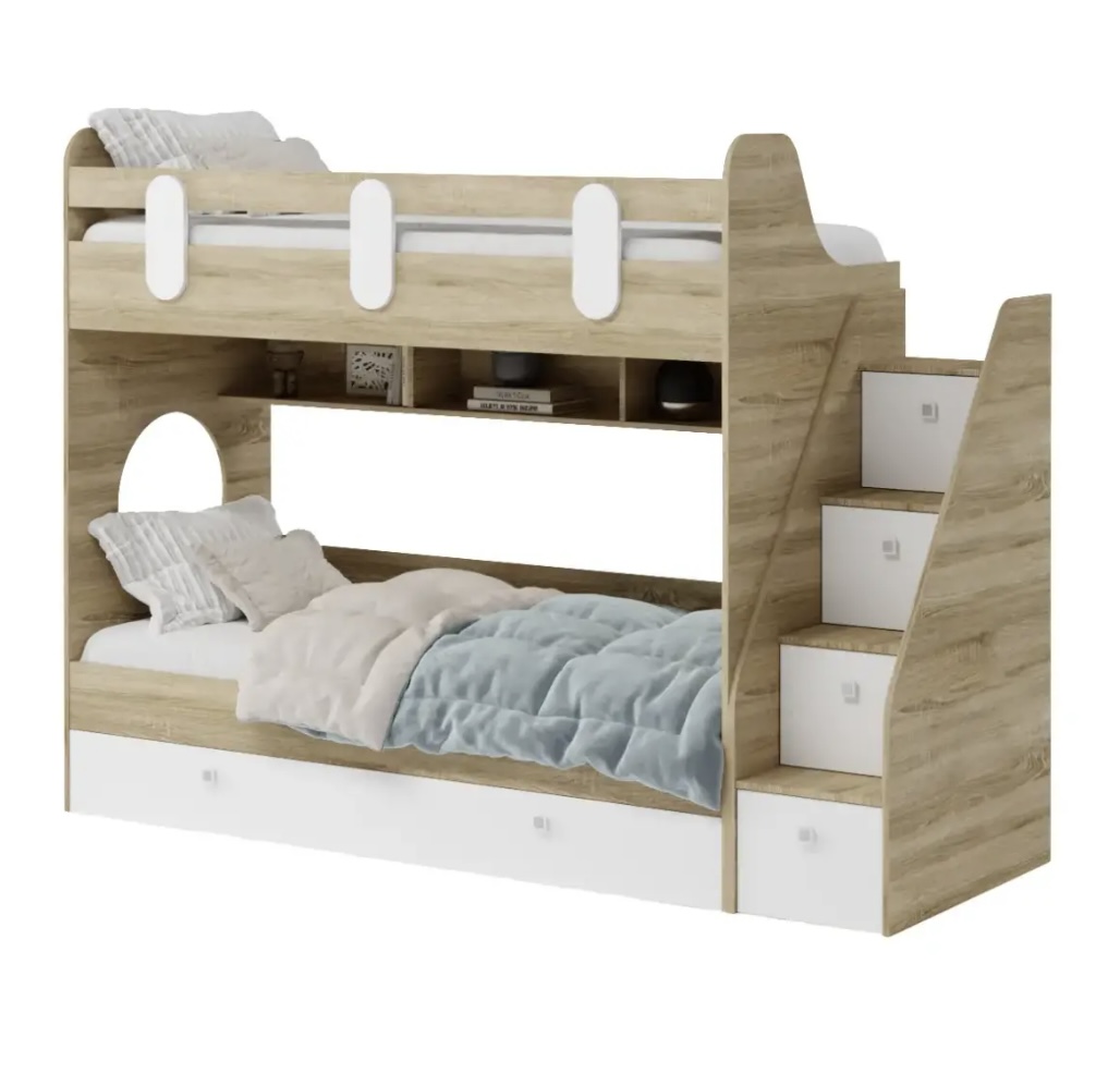 Прочная, стильная кровать Фортуна-3 с удобной, безопасной лестницей и комфортной высотой.