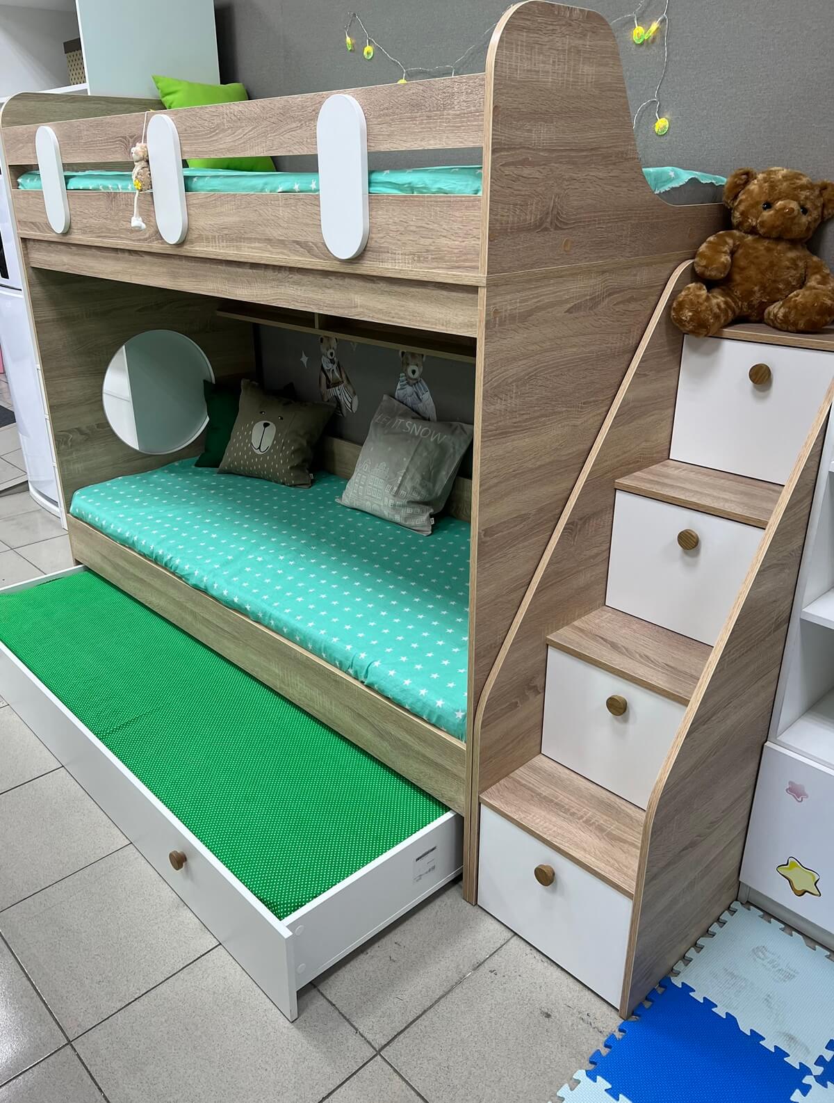Нижний ящик можно использовать как дополнительное выкатное спальное место (дно для этого специально укреплено)