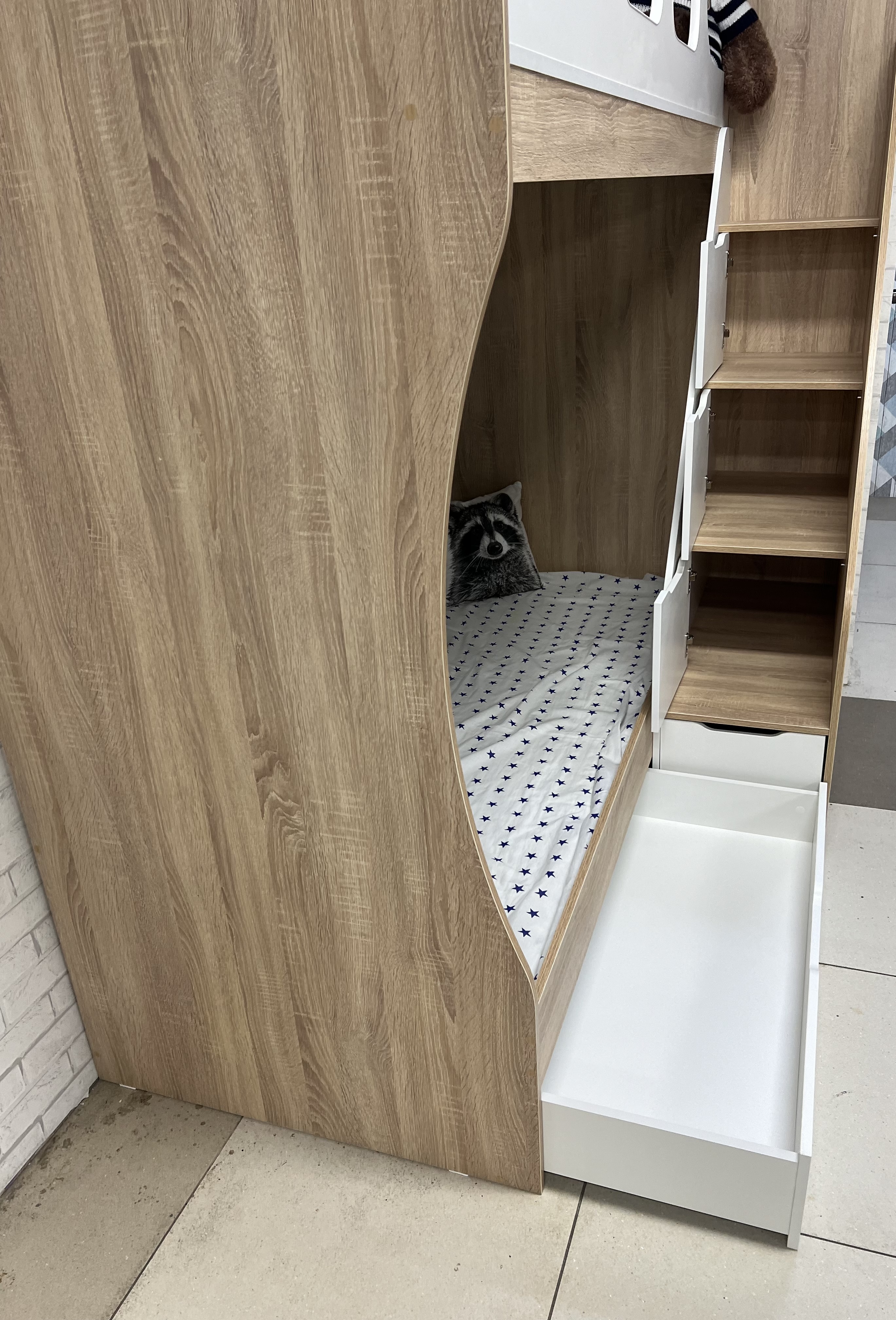 Высокая нагрузка на спальные места. Удобная лестница с ящиками |