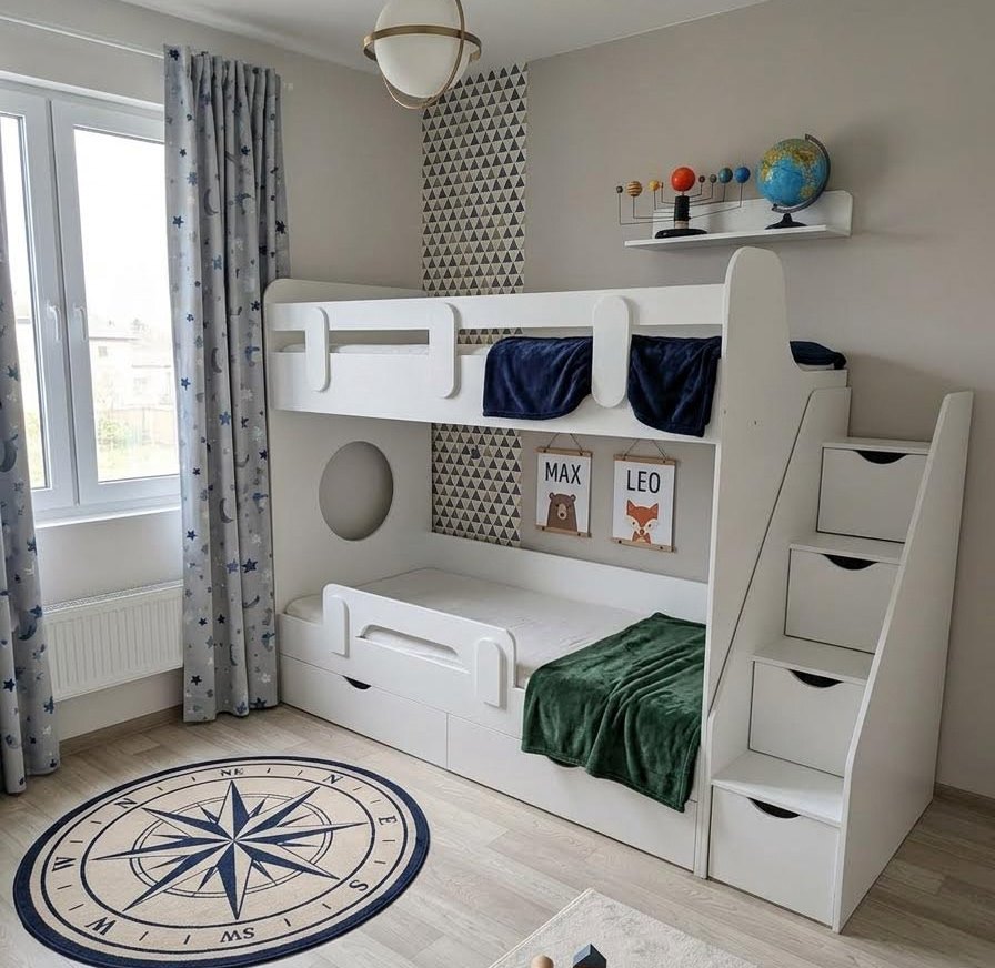 Выдвижные ящики в нижней кровати изготовлены с применением метабоксов, что делает изделие практичным и надежным.