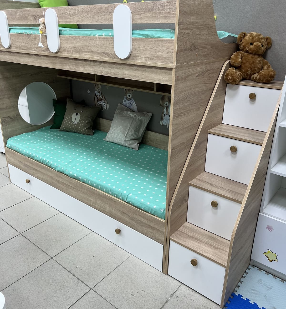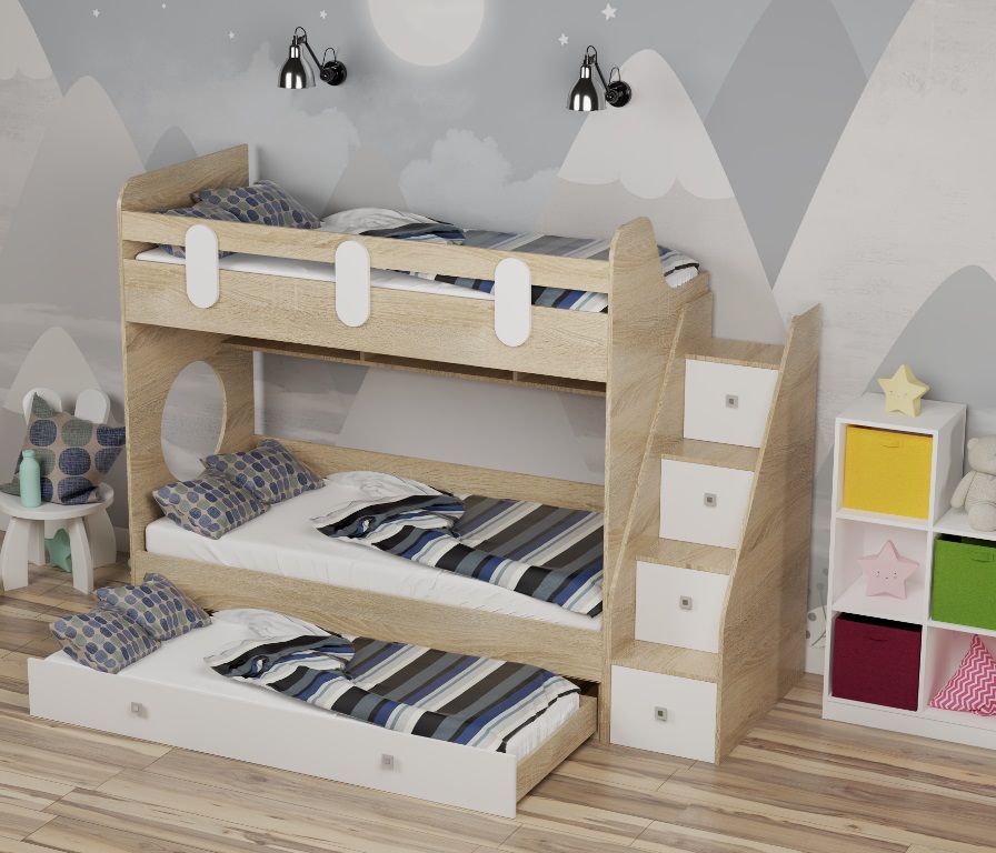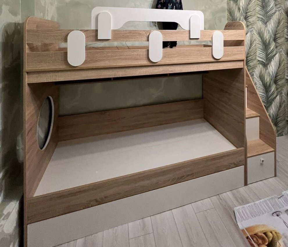 Высокая нагрузка на спальные места. Безопасный, высокий бортик. Прочные ящики! |