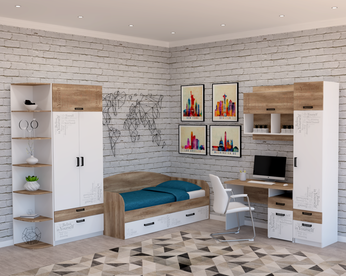 кровать + стол + полка + шкаф + приставка угловая + пенал