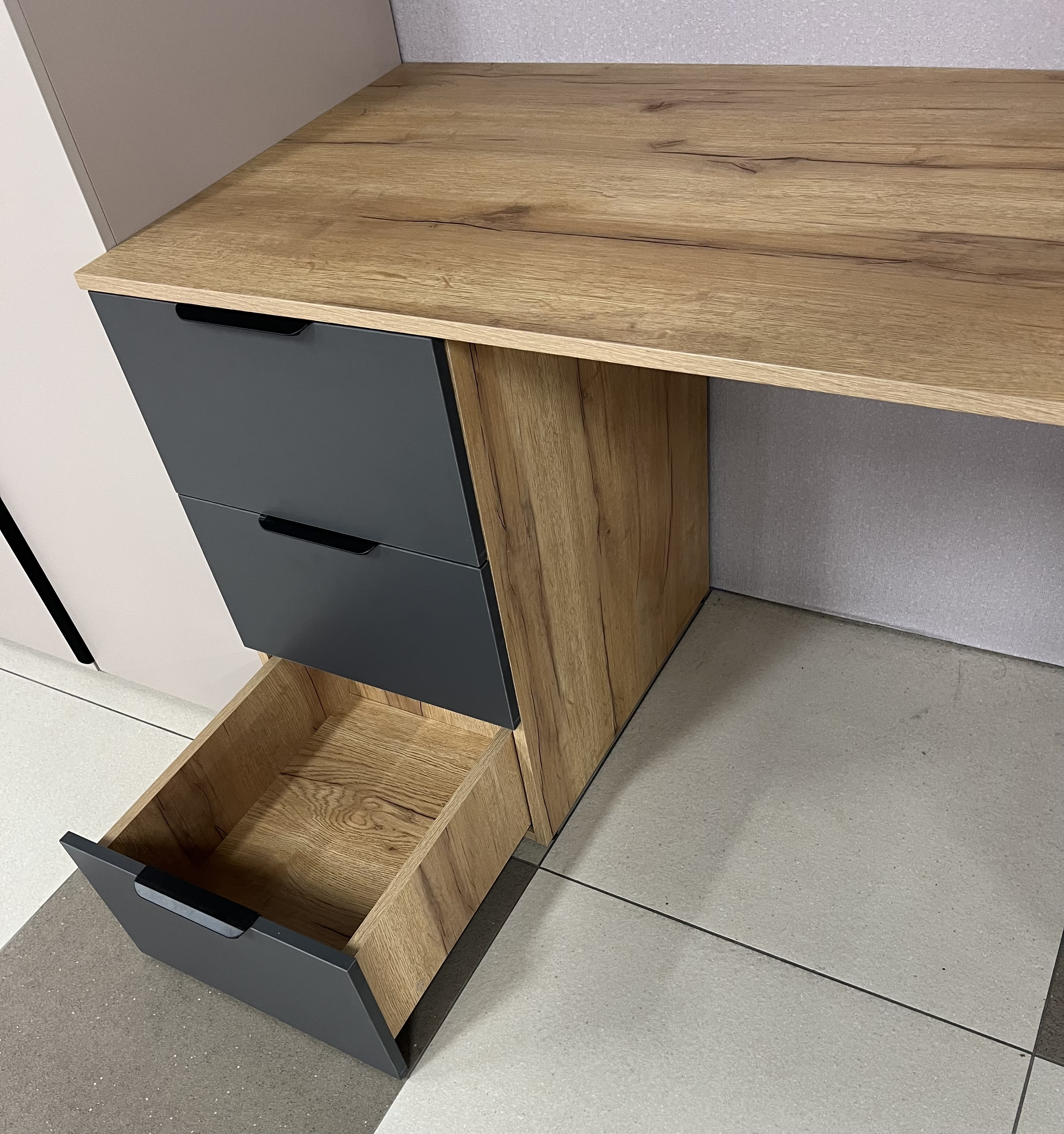 Столешница из прочного и качественного материала устойчива к царапинам и прекрасно справляется с повседневным износом.