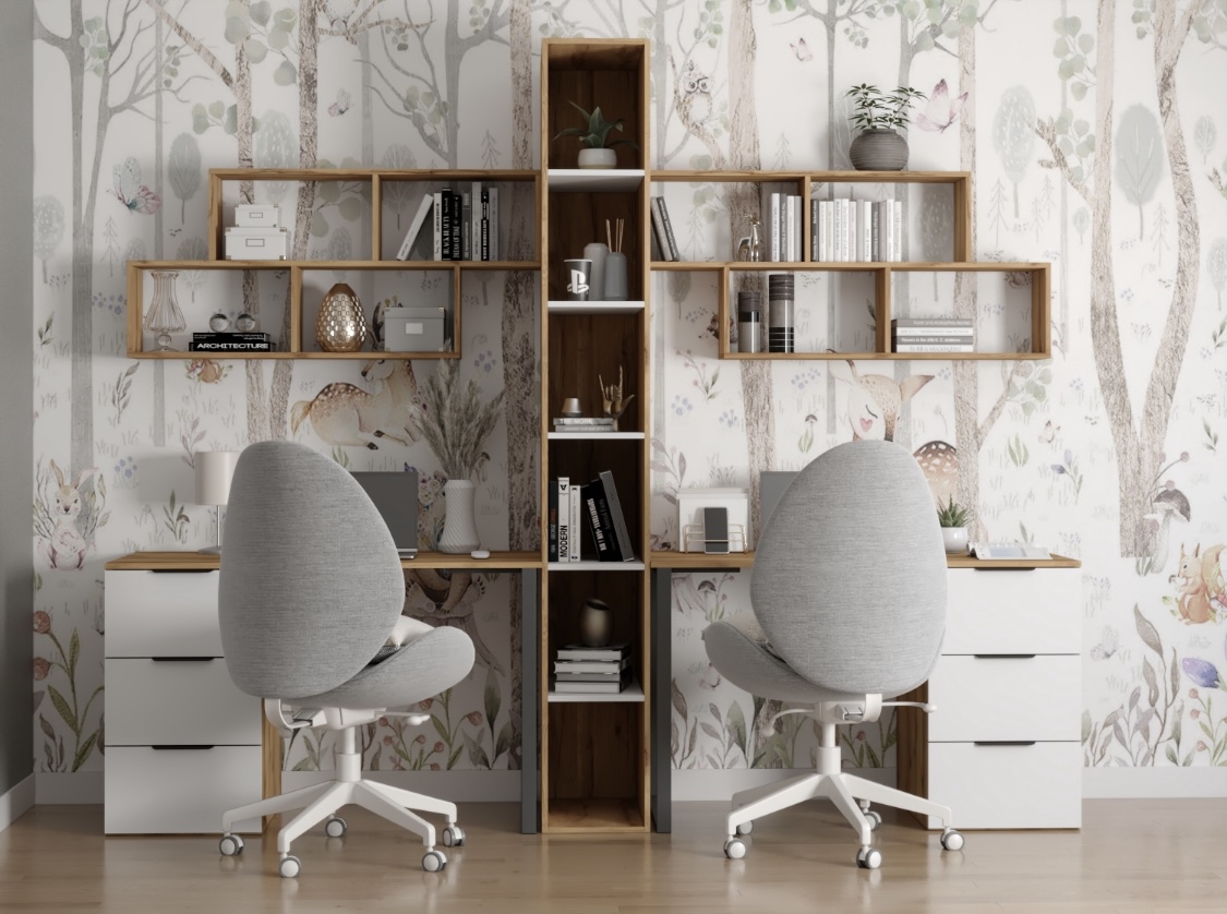 стол (2 шт) + стеллаж узкий + полка настенная (2 шт)