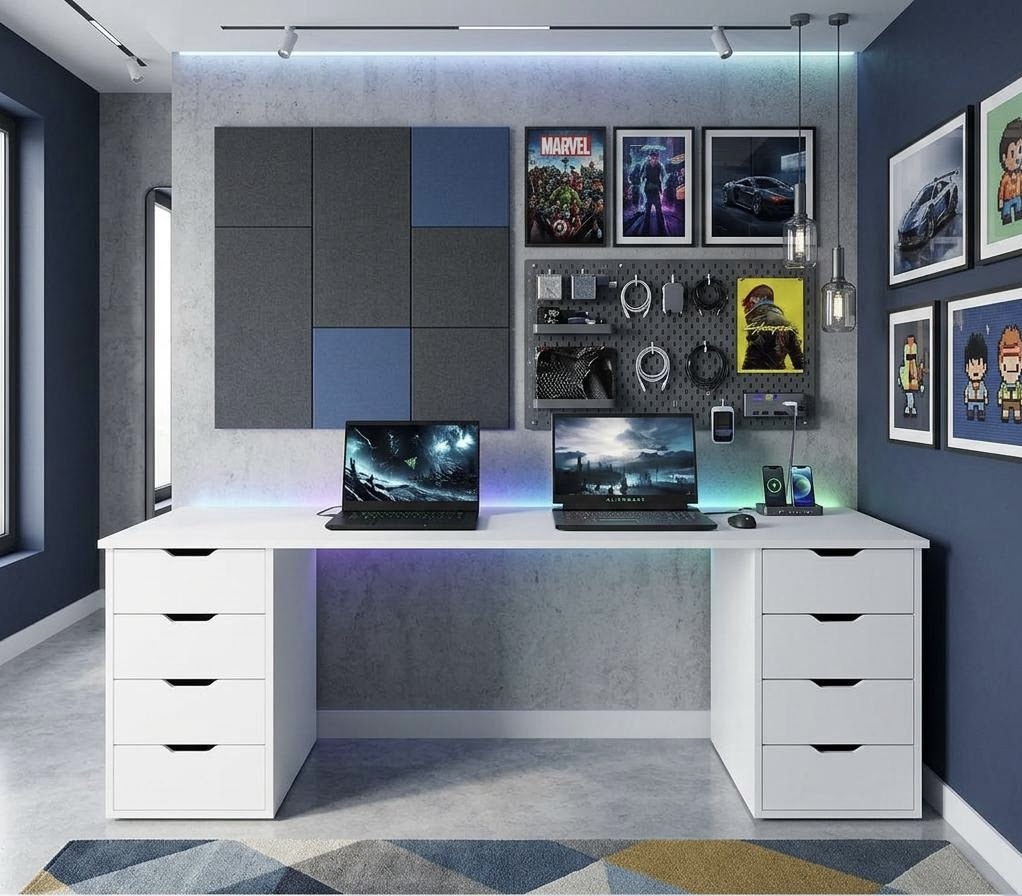 Стол для двоих детей с вместительными тумбами - функциональное решение, которое позволит детям комфортно заниматься учебой.