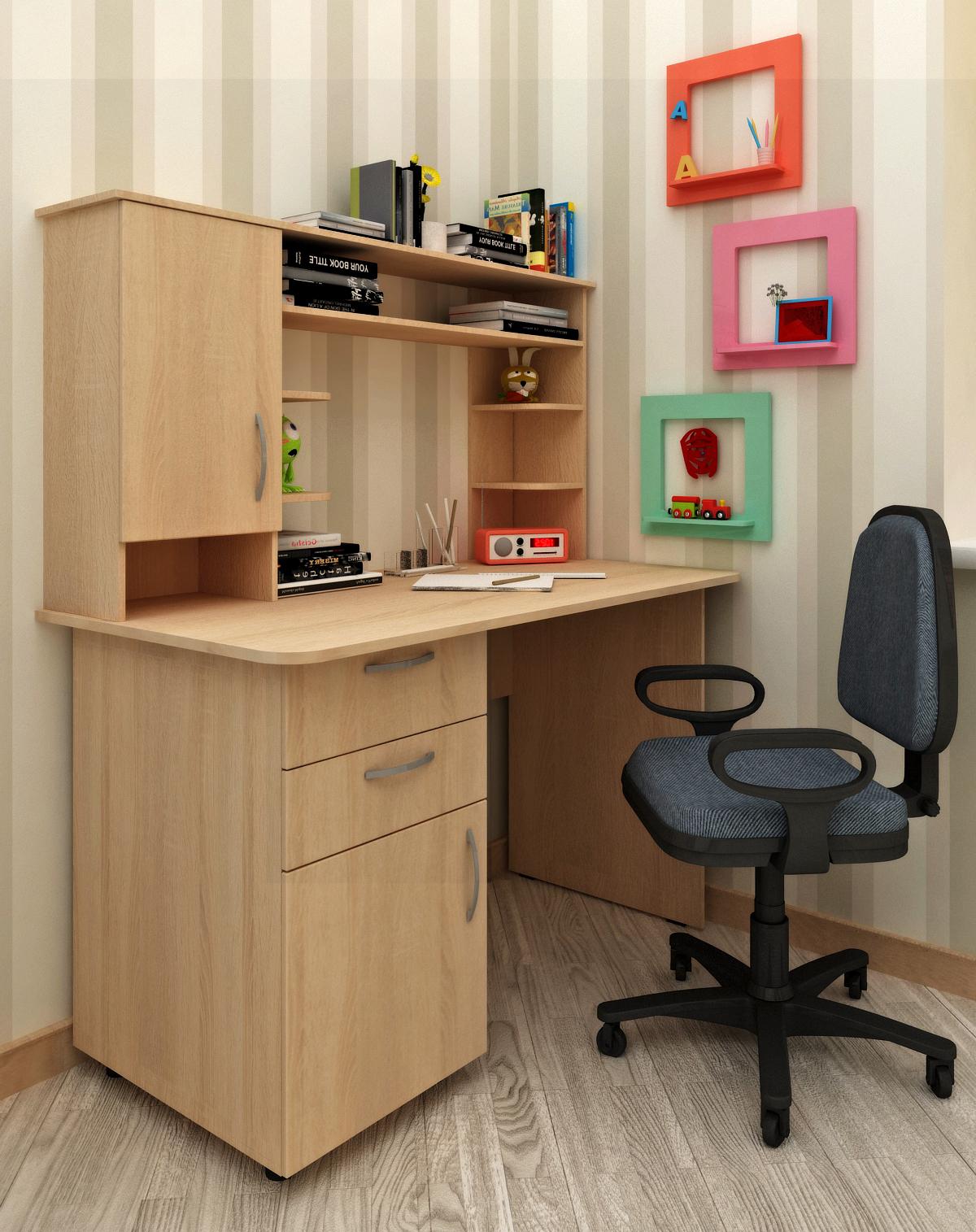Письменный стол с надстройкой позволит разместить в нем всё необходимое для учебы.