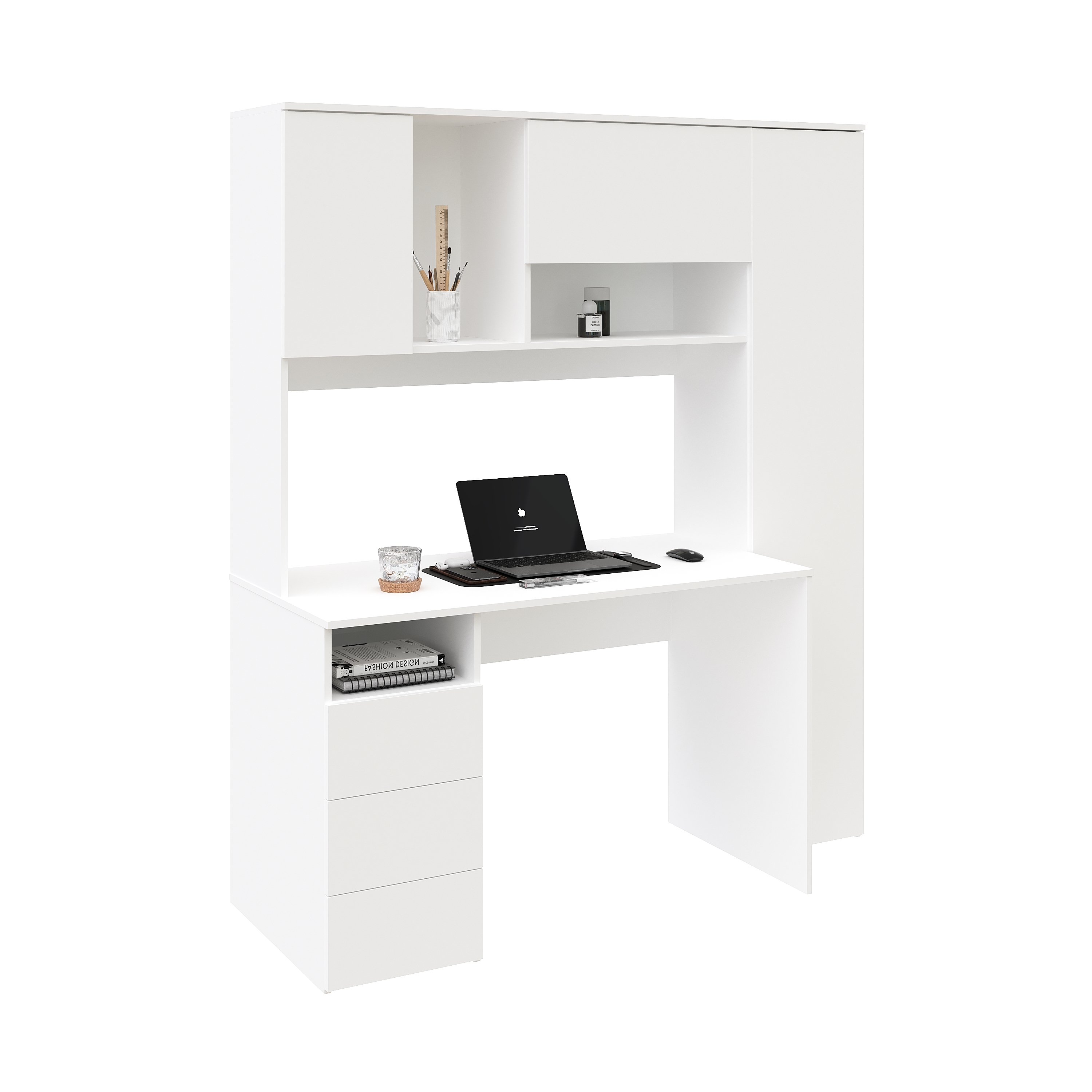 Просторная поверхность, удобные полки и ящики позволят разместить учебники, книги и канцелярию.