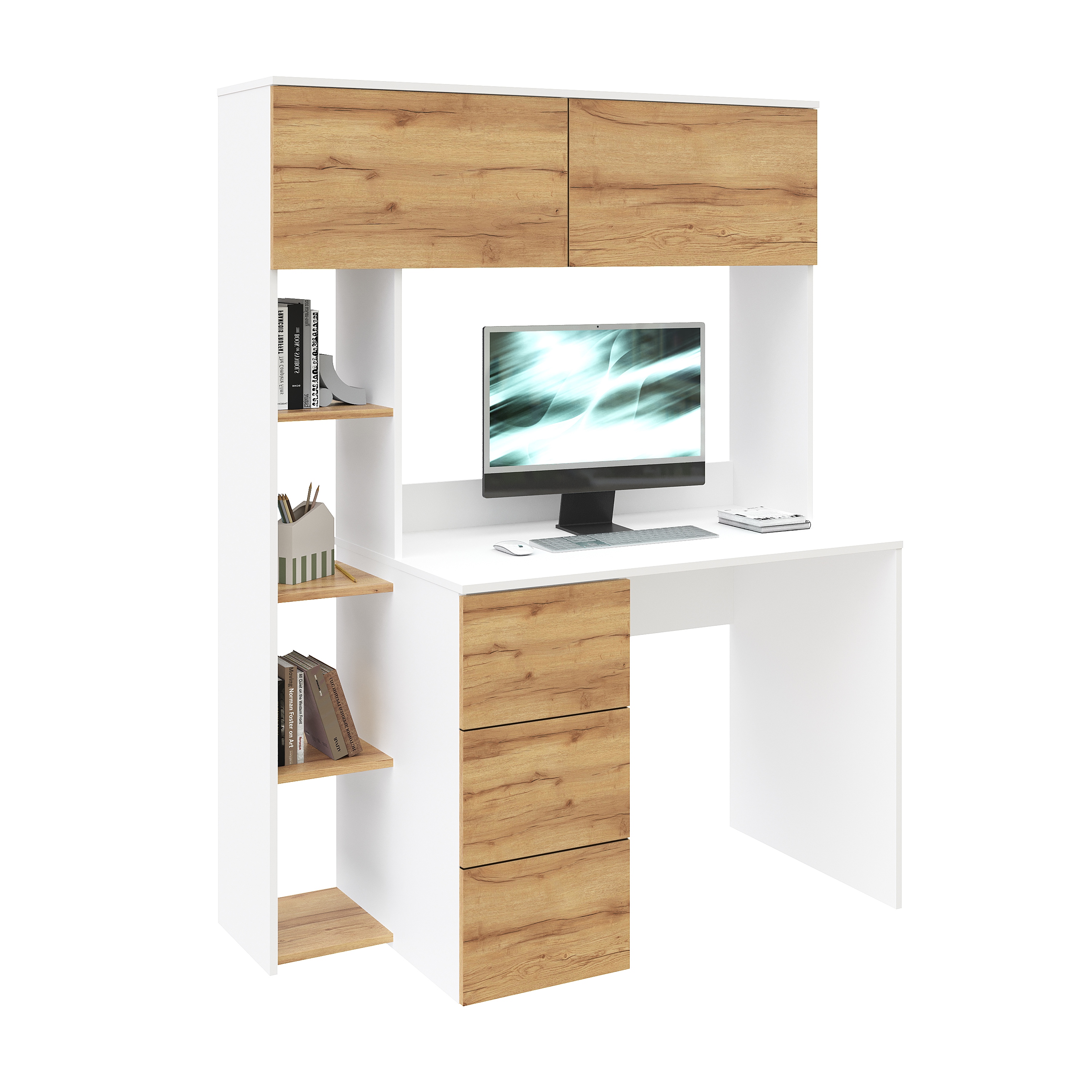 Просторная поверхность, удобные полки и ящики позволят разместить учебники, книги и канцелярию.