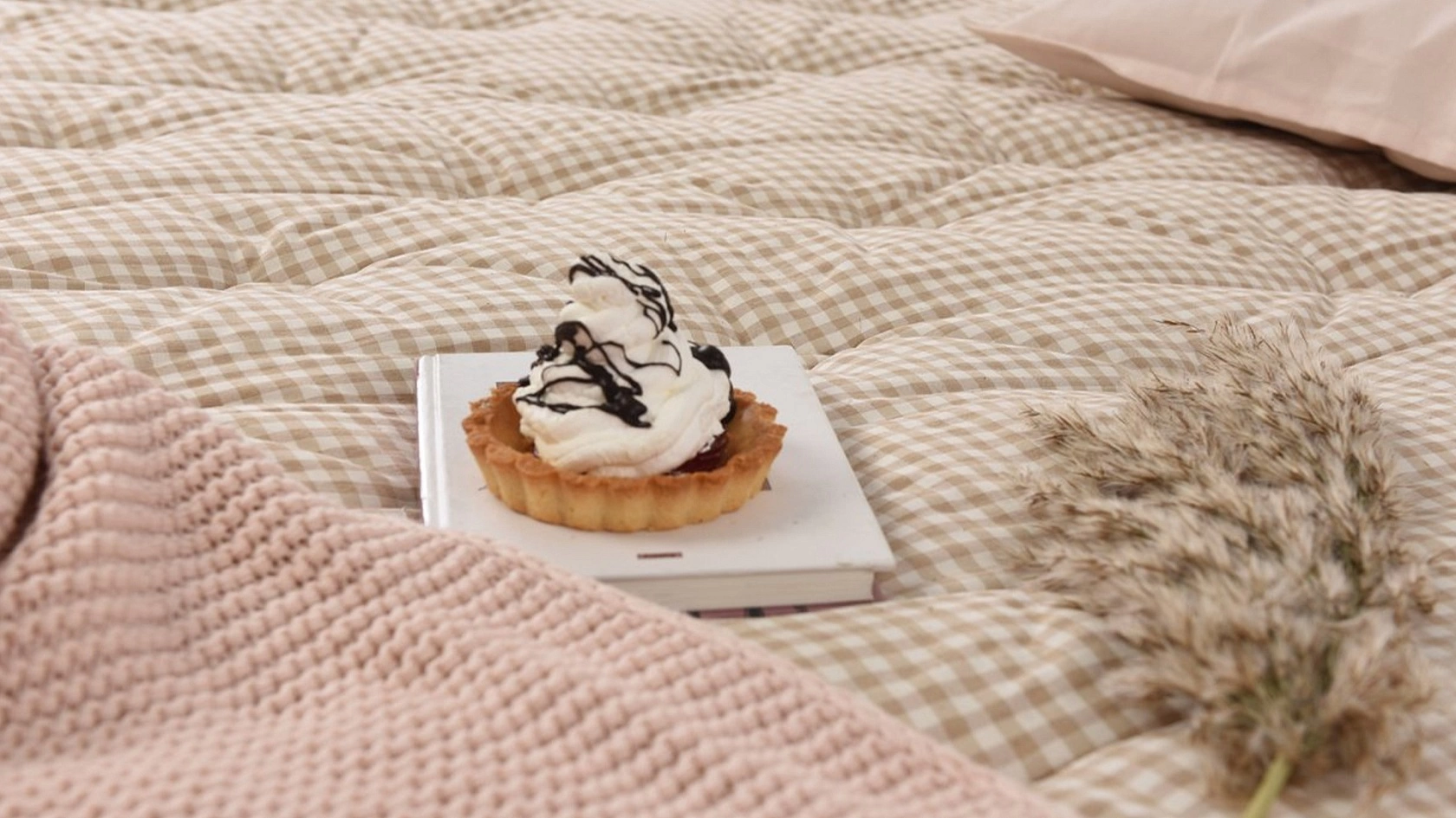 Принт чехла исполнен в трендовой бежевой клетке, поэтому матрас невероятно привлекателен и