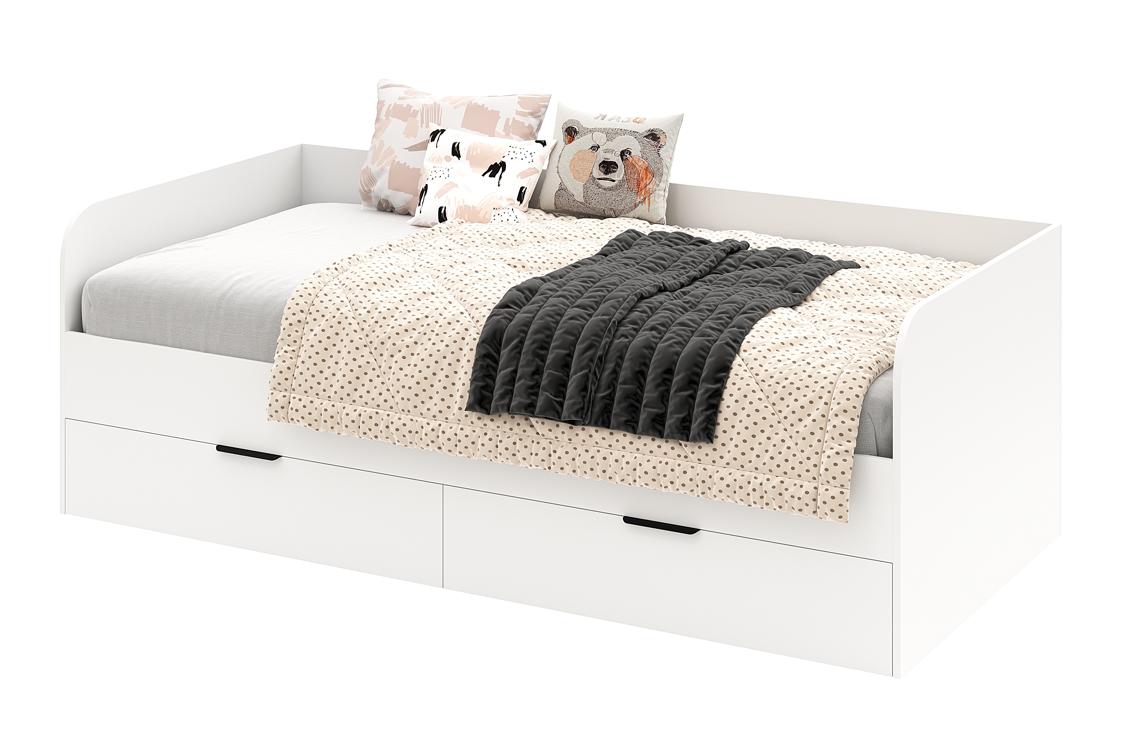 Торцы кровати закруглены и обработаны толстой ударопрочной кромкой ПВХ