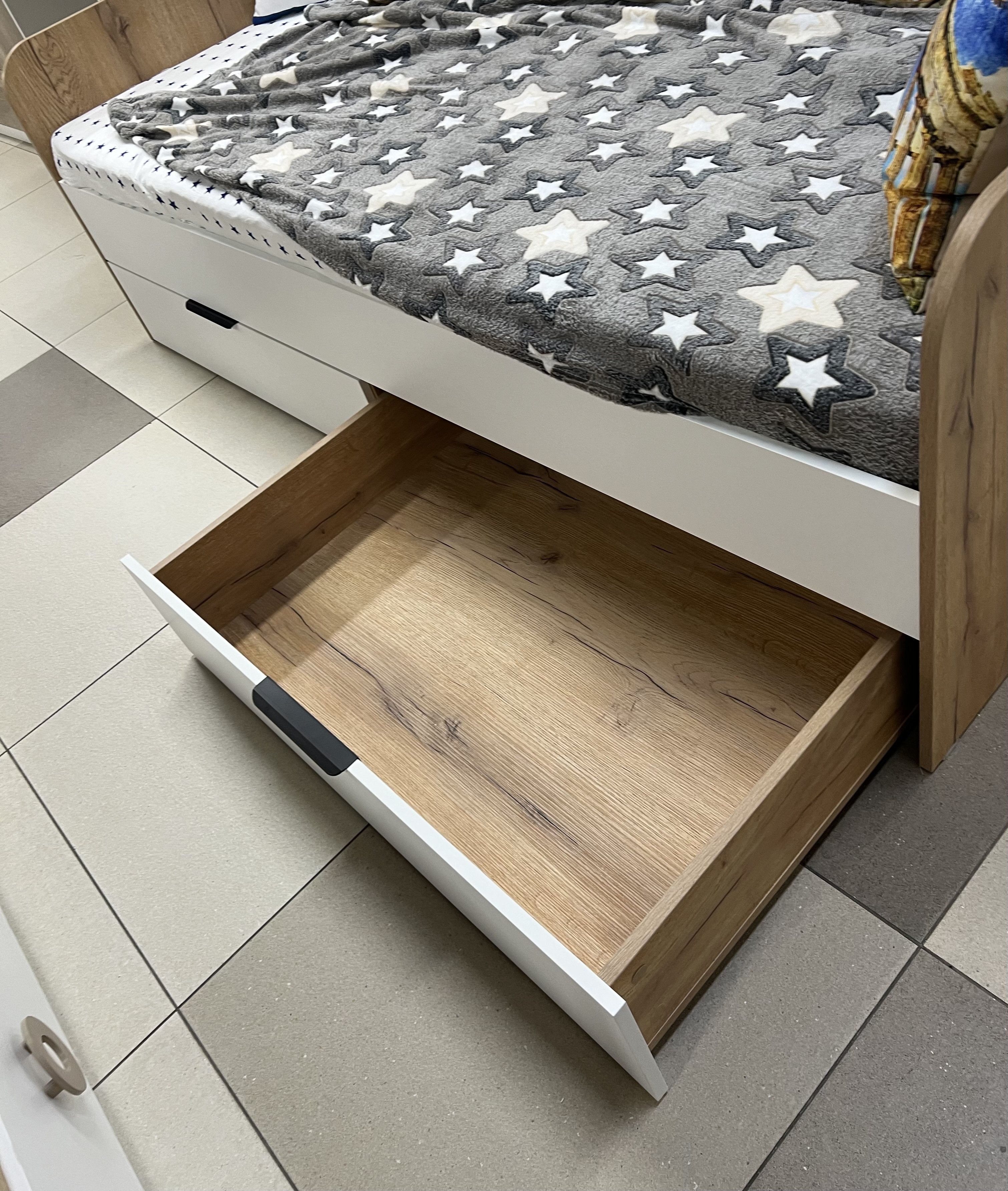 Высокая нагрузка на спальное место. Доводчики, направляющие скрытого монтажа. Прочные ящики! |