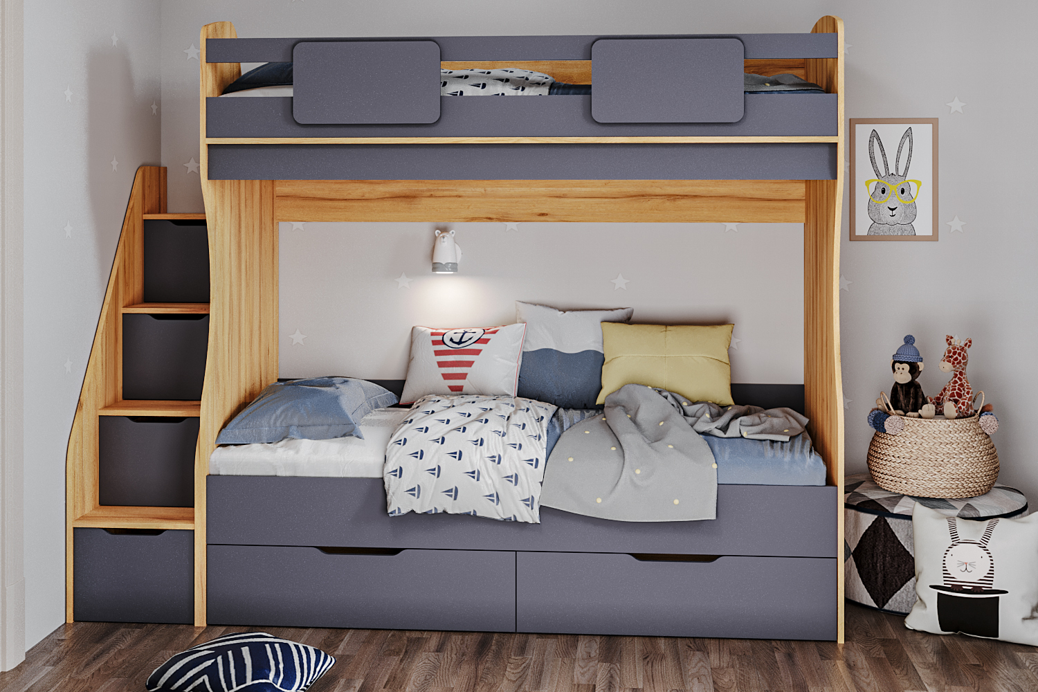 Двухъярусная кровать Миа - современное и стильное решение для оформления комнаты для двоих детей.