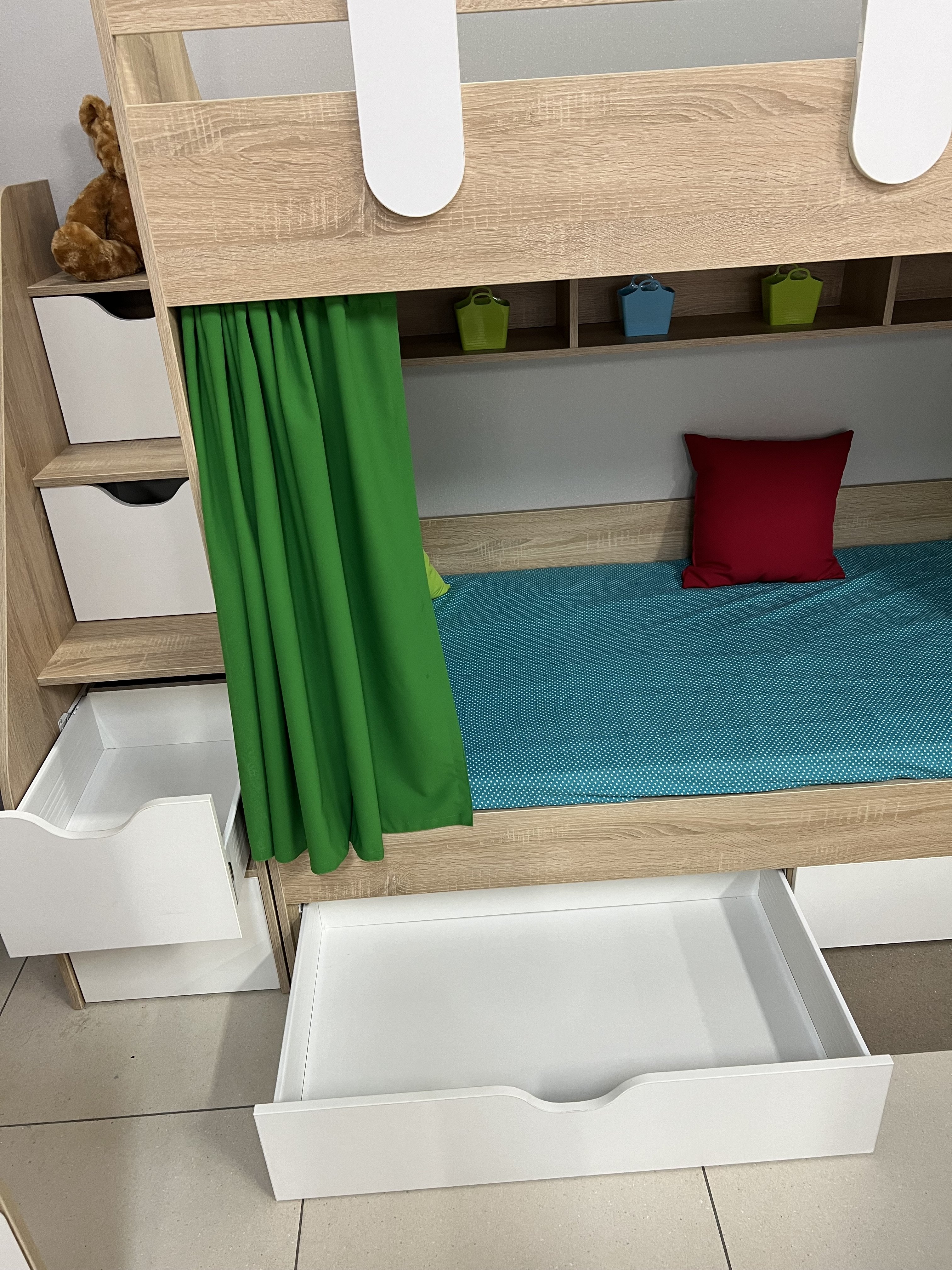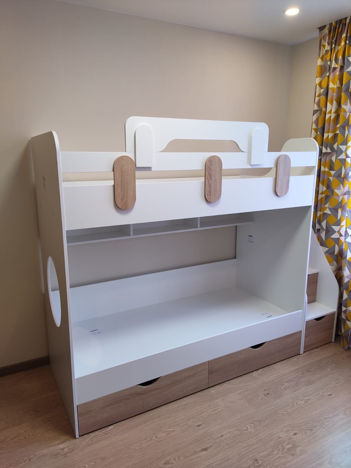 Вместо них - цельный и прочный настил из ЛДСП, который выдерживает сверхвысокую нагрузку и позволяет расположиться даже взрослому с ребенком.