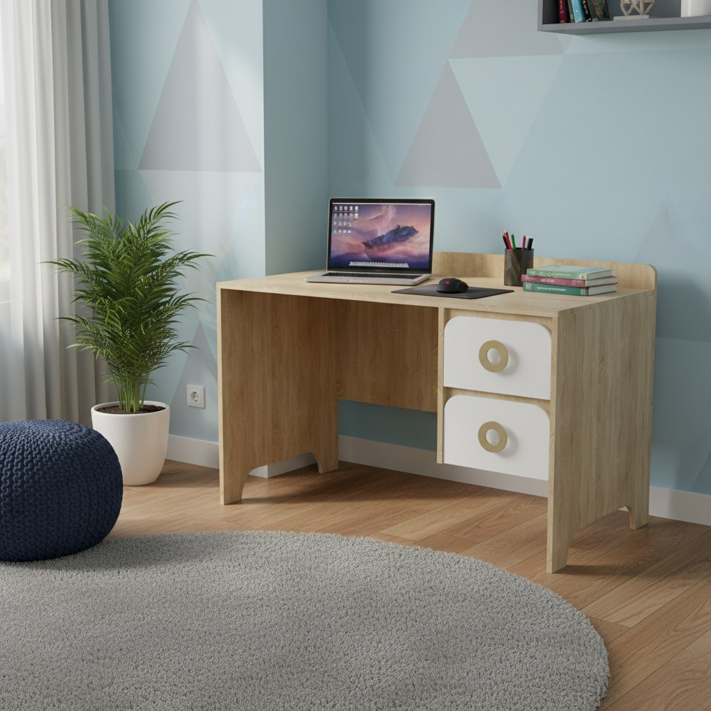 Стол письменный Юни ширина 1200 мм (дуб сонома+белый) от Династия Kids