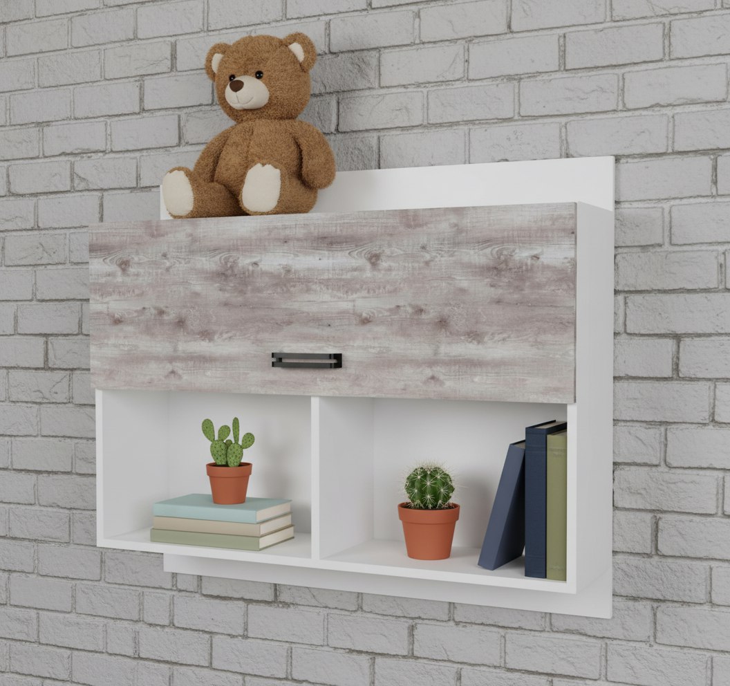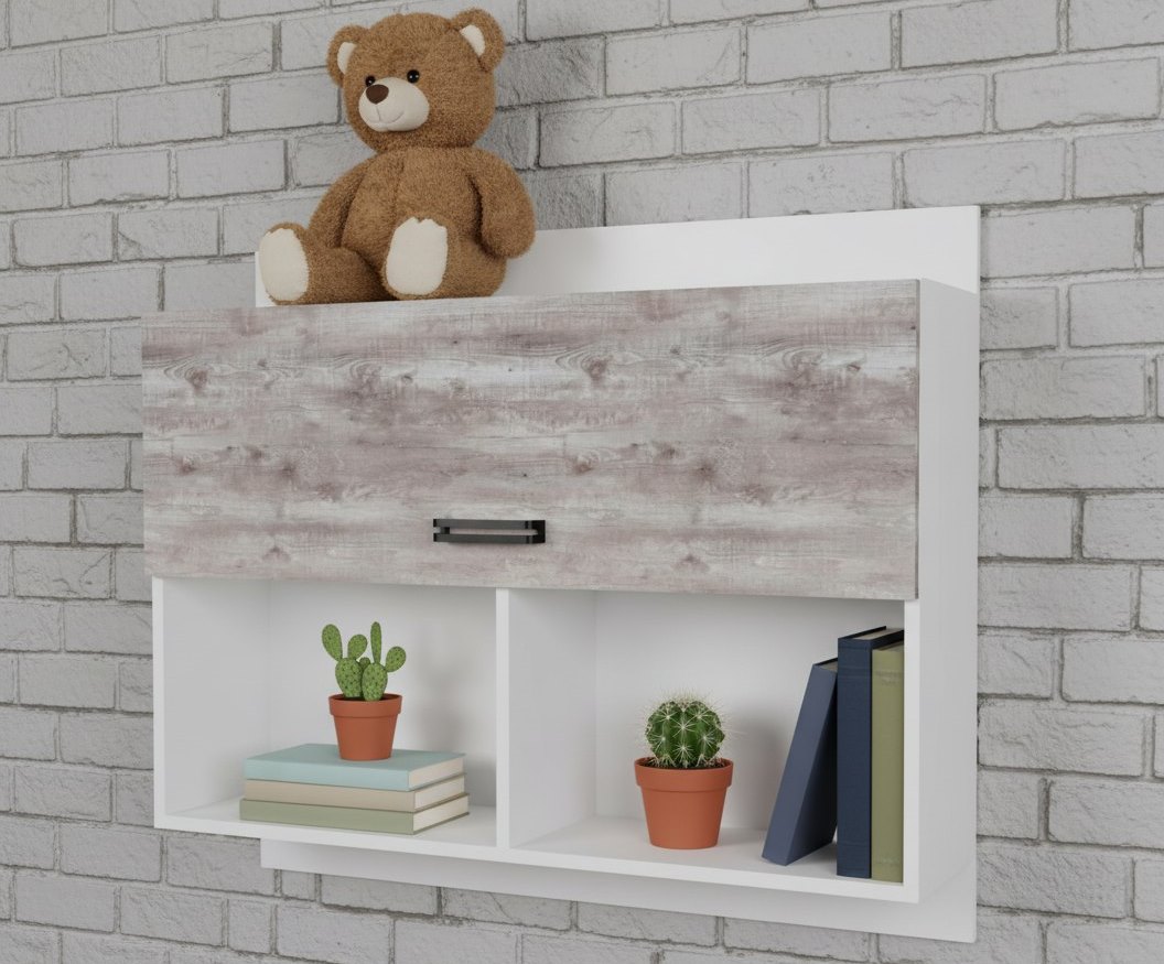 Мебель выполнена из сертифицированного, качественного, экологически чистого ЛДСП Е0,5 в сочетании цветов "бетон пайн" + белый.