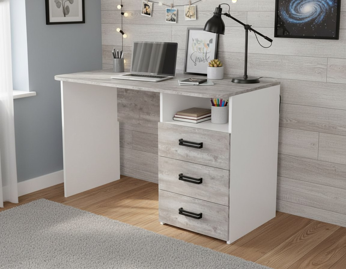В стол встроены три выдвижных ящика на шариковых направляющих.
