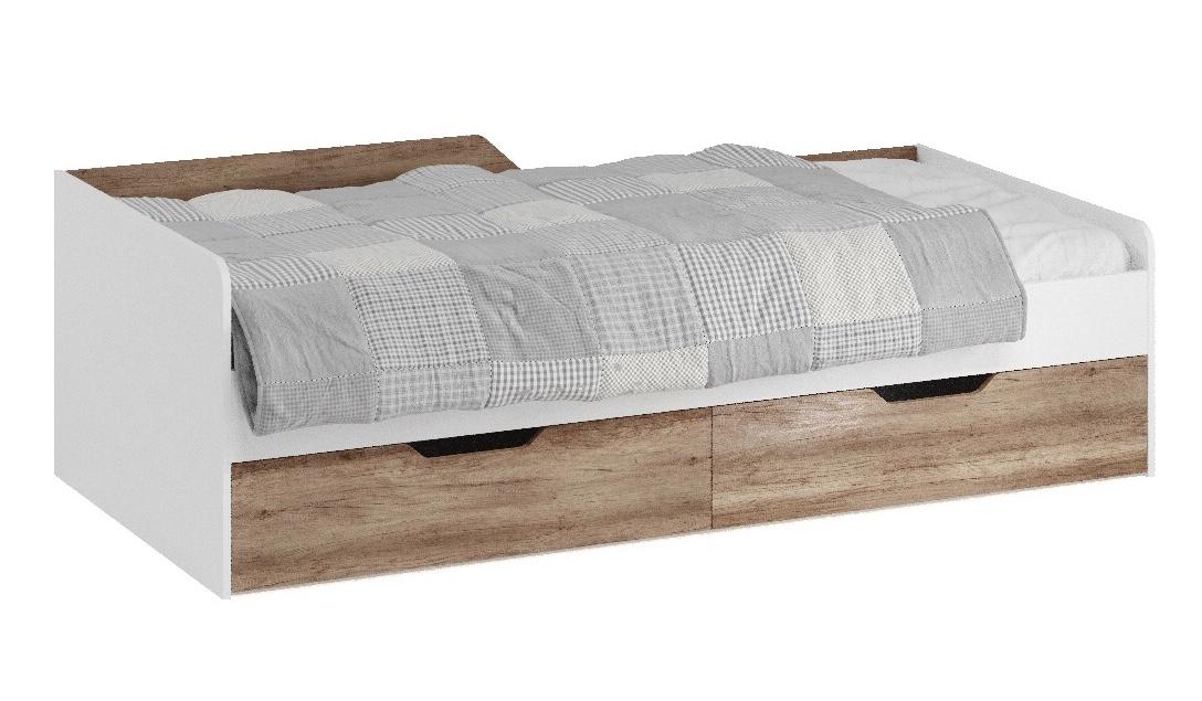 В кровать встроены два выдвижных ящика на шариковых направляющих полного выдвижения.