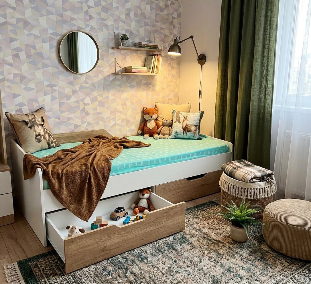 Вместо них - цельный и прочный настил из ЛДСП, который выдерживает сверхвысокую нагрузку и позволяет расположиться даже взрослому с ребенком.