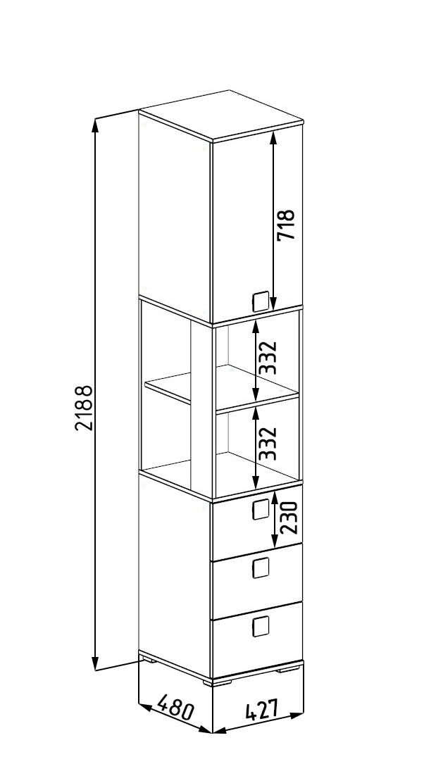 Габариты: ширина 427 х высота 2188 х глубина 480 мм