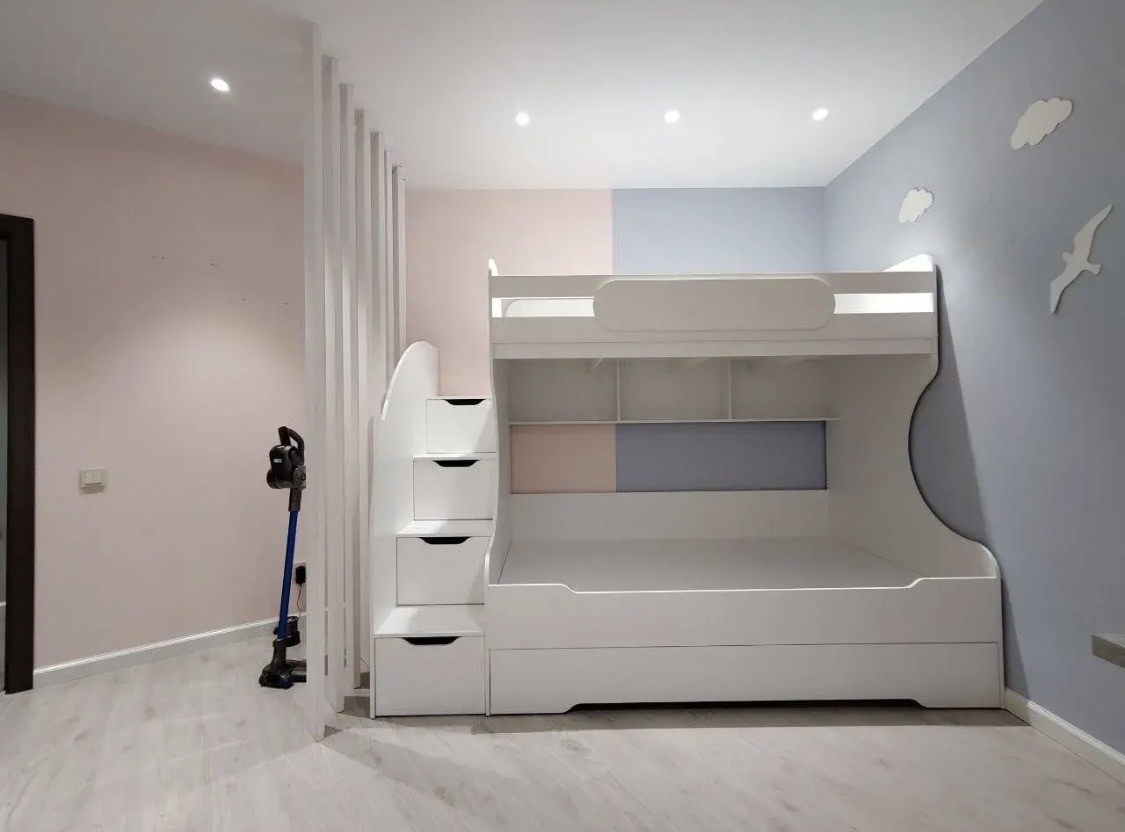 Вместо них - цельный и прочный настил из ЛДСП, который выдерживает сверхвысокую нагрузку и позволяет расположиться даже взрослому с ребенком.