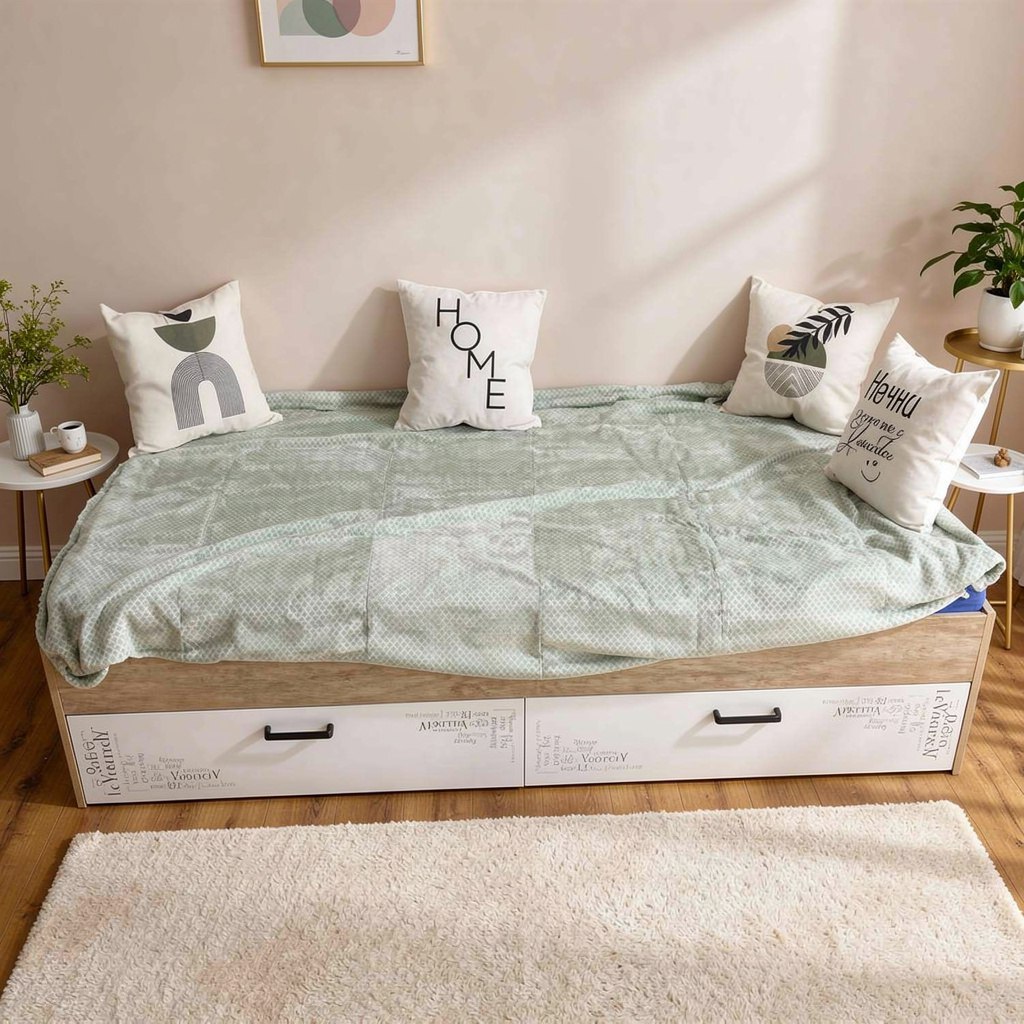 Вместо них - цельный и прочный настил из ЛДСП, который выдерживает сверхвысокую нагрузку и позволяет расположиться даже взрослому с ребенком.