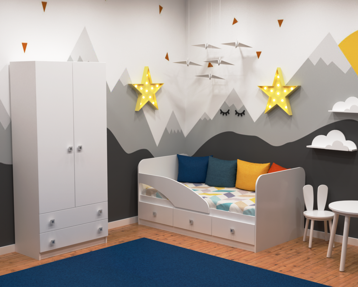 Комплект детской мебели: кровать Умка с бортиком + шкаф