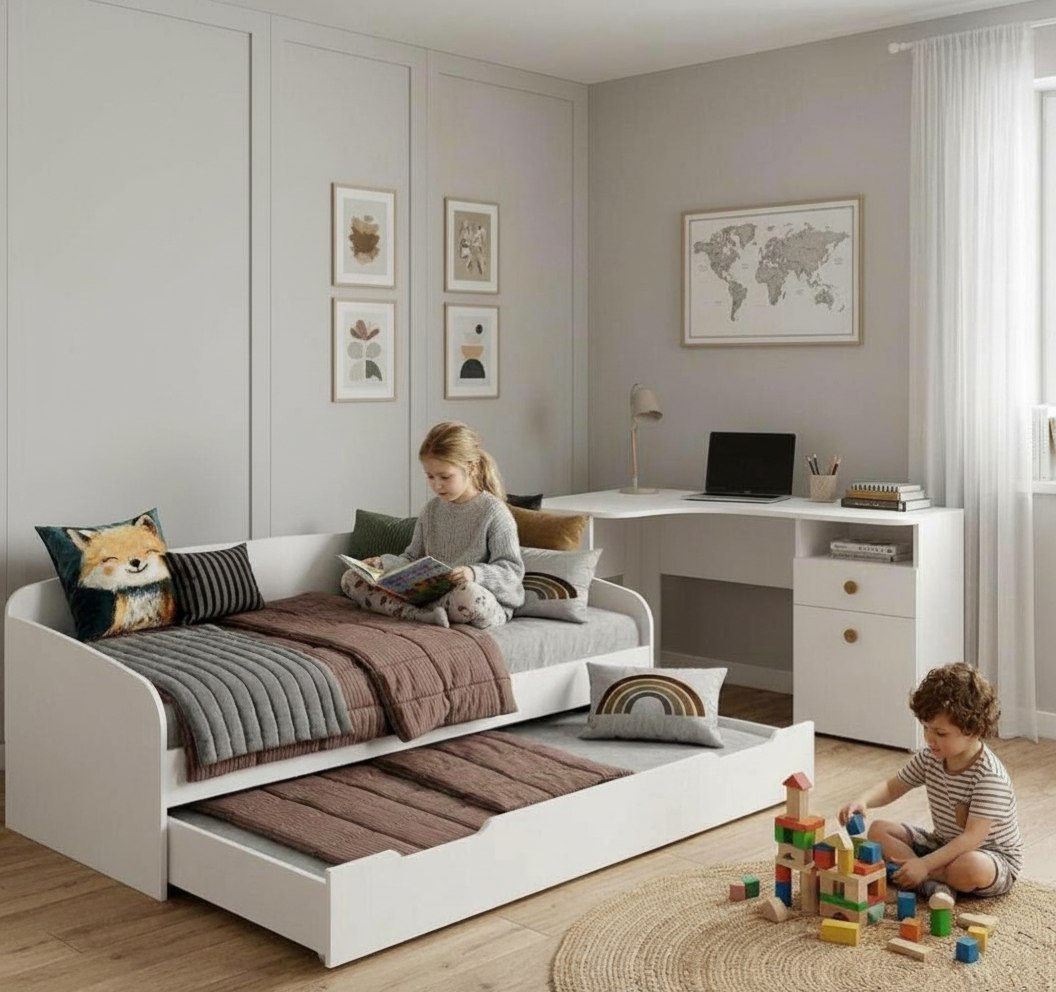 Кровать выдвижная Двушка + стол угловой коллекции Умка