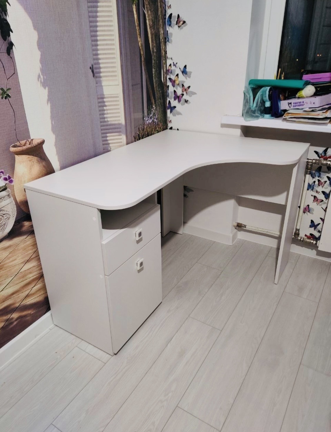 Мебель выполнена из сертифицированного, качественного, экологически чистого ЛДСП класса Е0,5 в белом цвете.