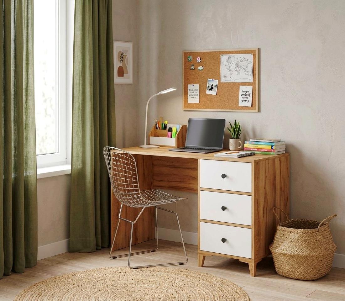 В стол встроены три выдвижных ящика на направляющих скрытого монтажа с доводчиками.
