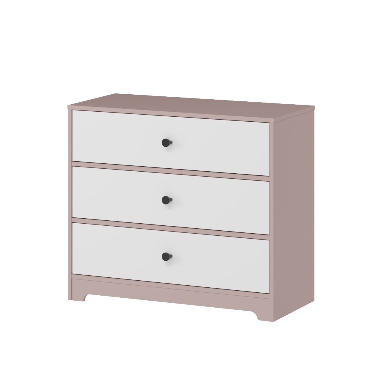 В комод встроены три выдвижных ящика на направляющих скрытого монтажа с доводчиками.