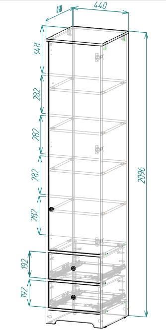 Габариты пенала: ширина 440, глубина 490, высота 2096 мм