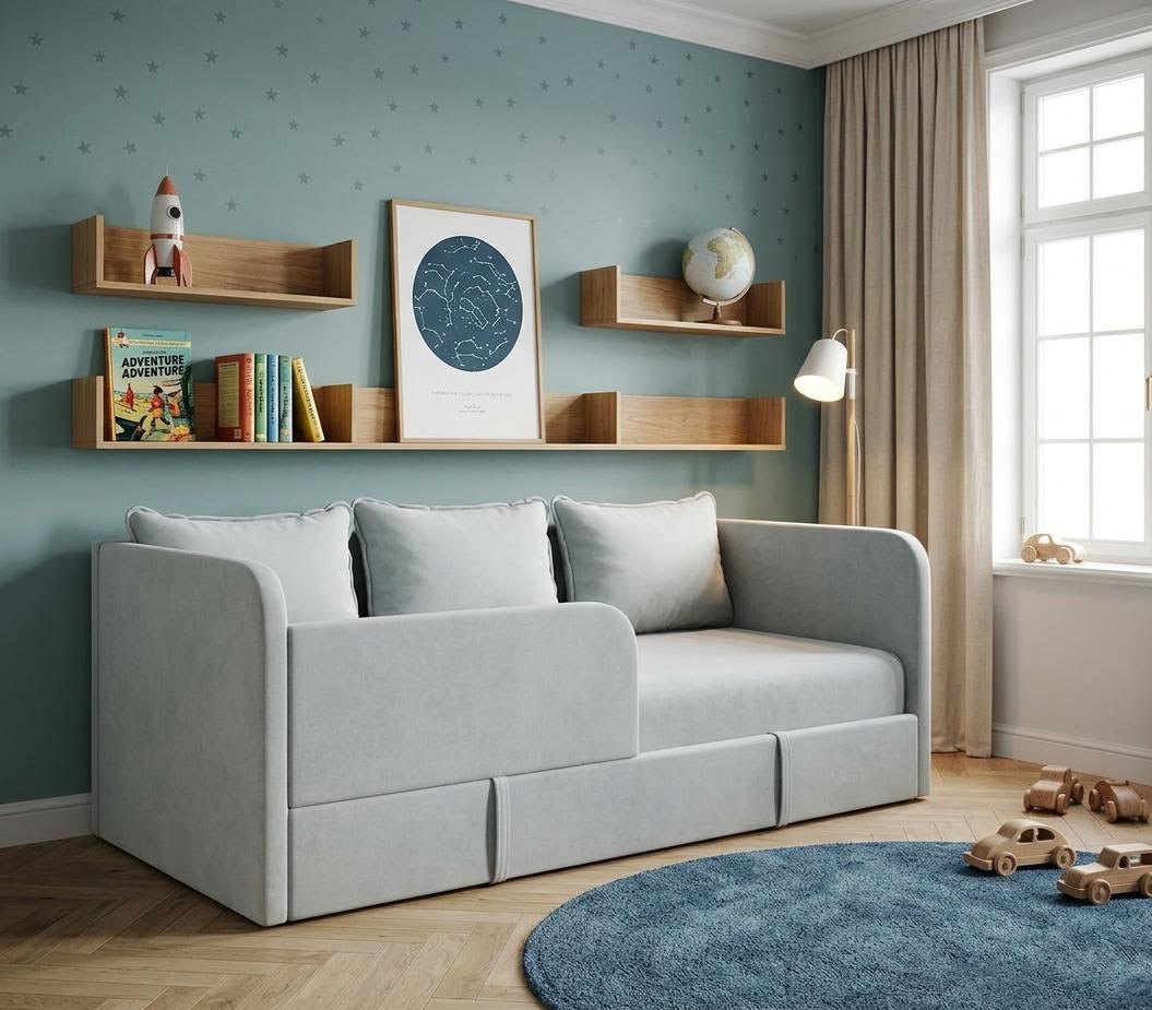 Диванчик подойдет и для самых маленьких деток, так как имеет защитный бортик.