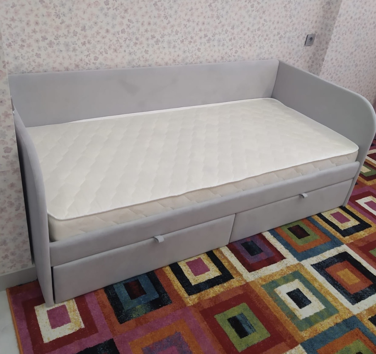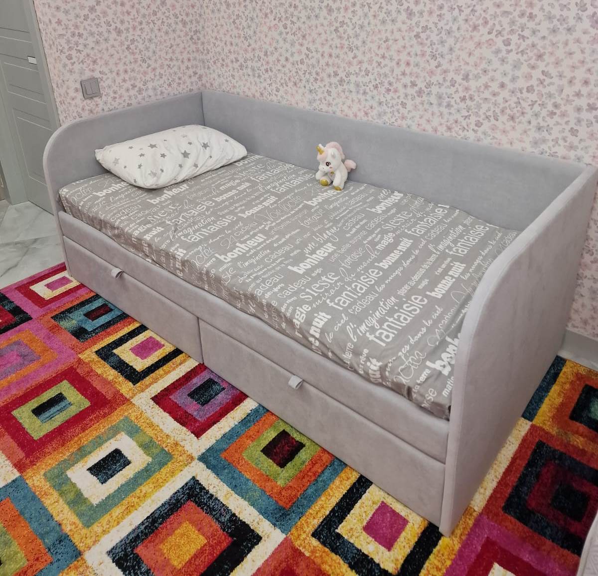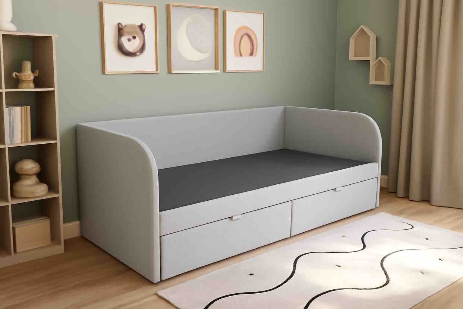 Кровать разработана с учетом требований к безопасности ребенка, сглаженные, мягкие углы, прочная конструкция и безопасные, гипоаллергенные материалы.