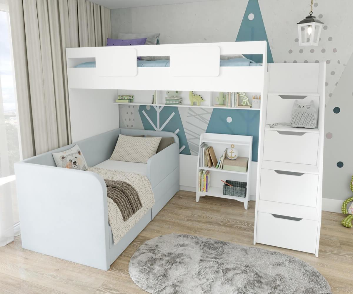 кровать-чердак Мозаика-2 + мягкая кровать Непос + стеллаж детский Уют-5