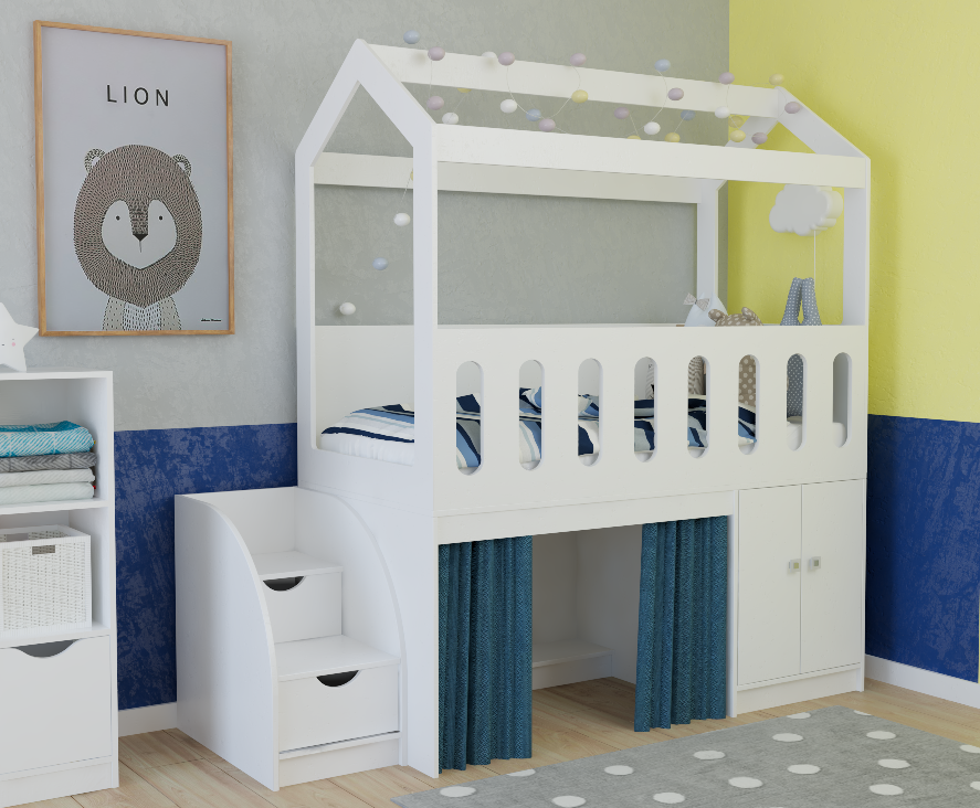 Ниша под кроватью с полочками - дополнительное место для хранения любимых игрушек.