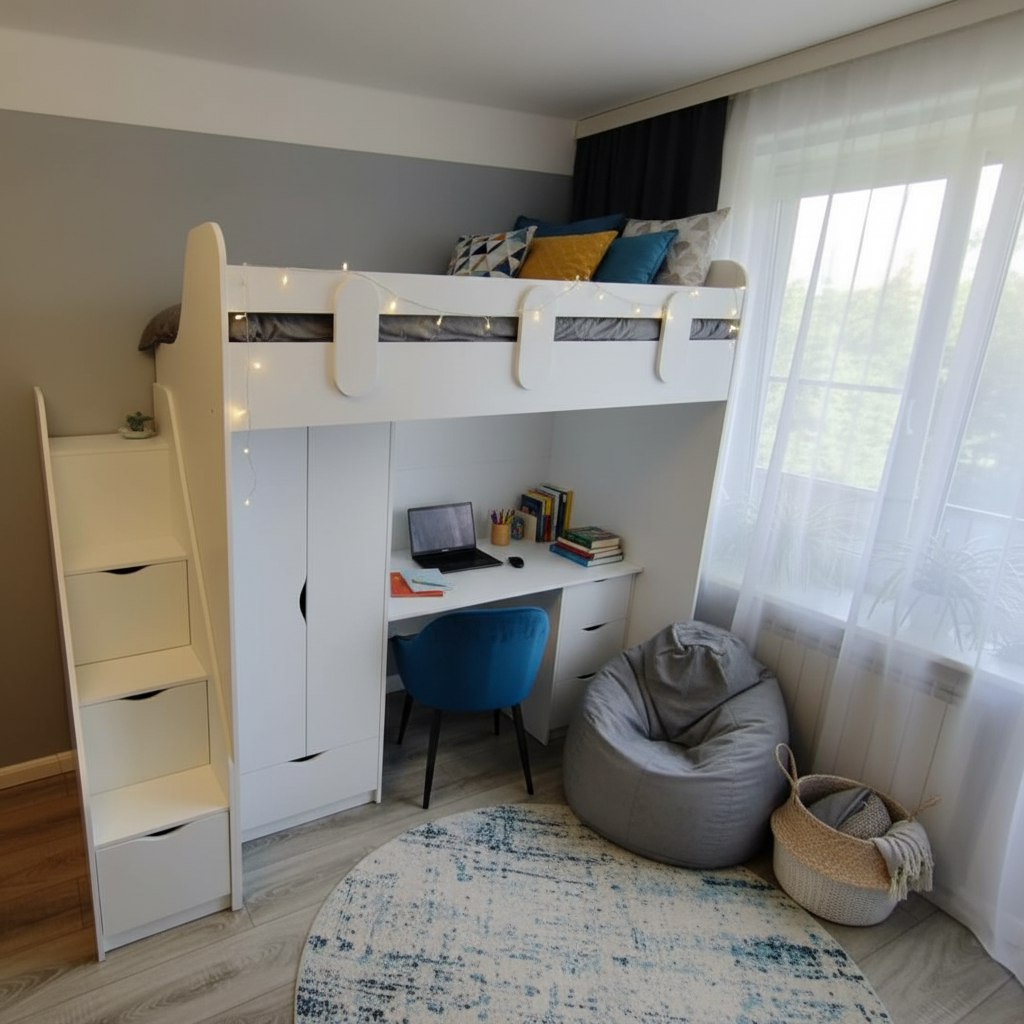 Вместо них - цельный и прочный настил из ЛДСП, который выдерживает сверхвысокую нагрузку и позволяет расположиться даже взрослому с ребенком.