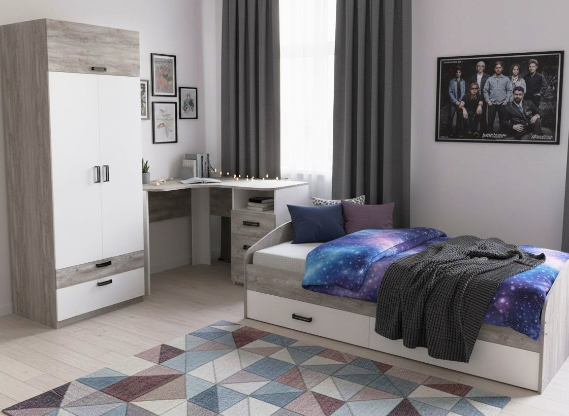 экологически чистого ЛДСП класса Е0,5 в сочетании цветов бетон пайн с белым.