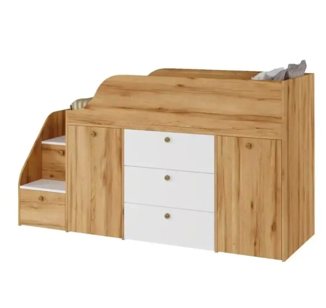 Функциональная кровать с удобной лестницей и множеством мест для хранения детских вещей.