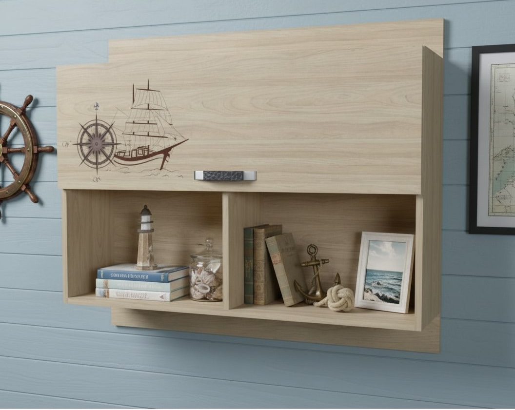 Полка выполнена из сертифицированного, качественного, экологически чистого ЛДСП Е0.5 в цвете "швейцарский вяз" с принтом.