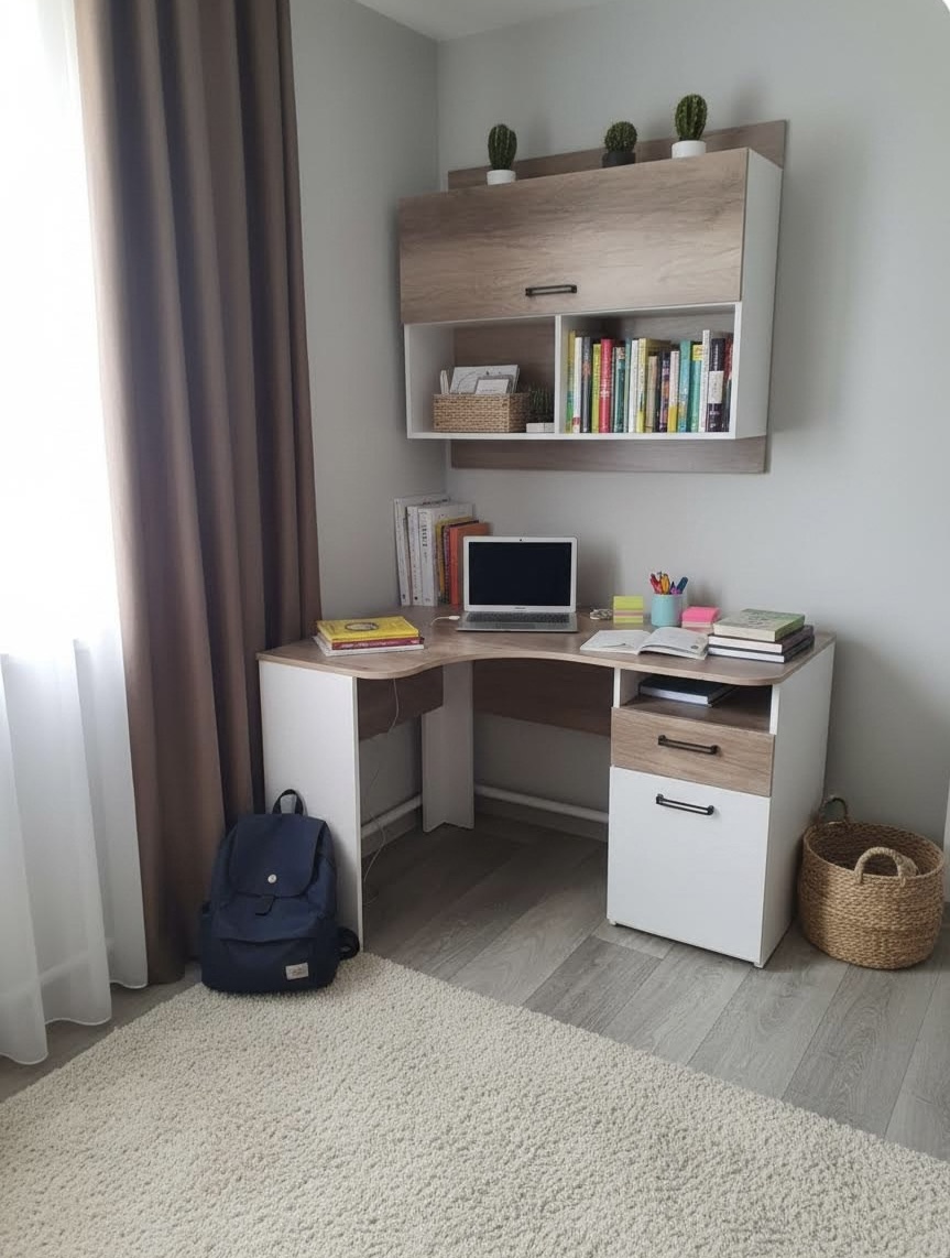 Мебель выполнена из сертифицированного, качественного, экологически чистого ЛДСП Е0,5 в сочетании цветов дуб каньон + белый и оформлена принтом.