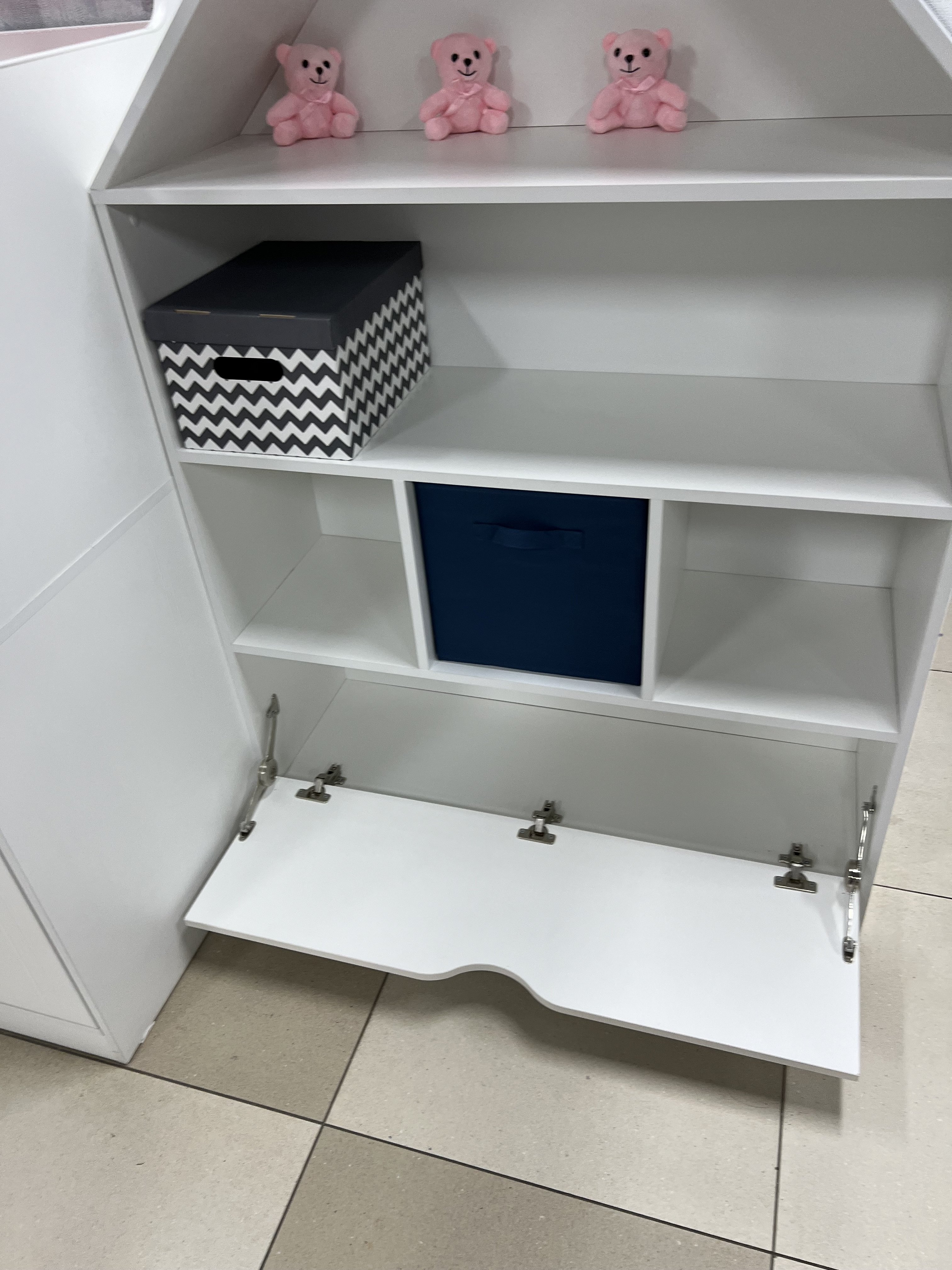 Стеллаж в виде домика - оригинальное и практичное дополнение в интерьере детской комнаты.