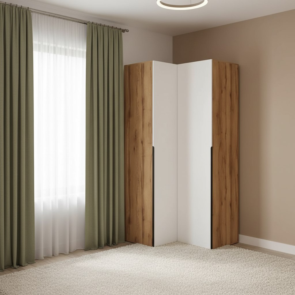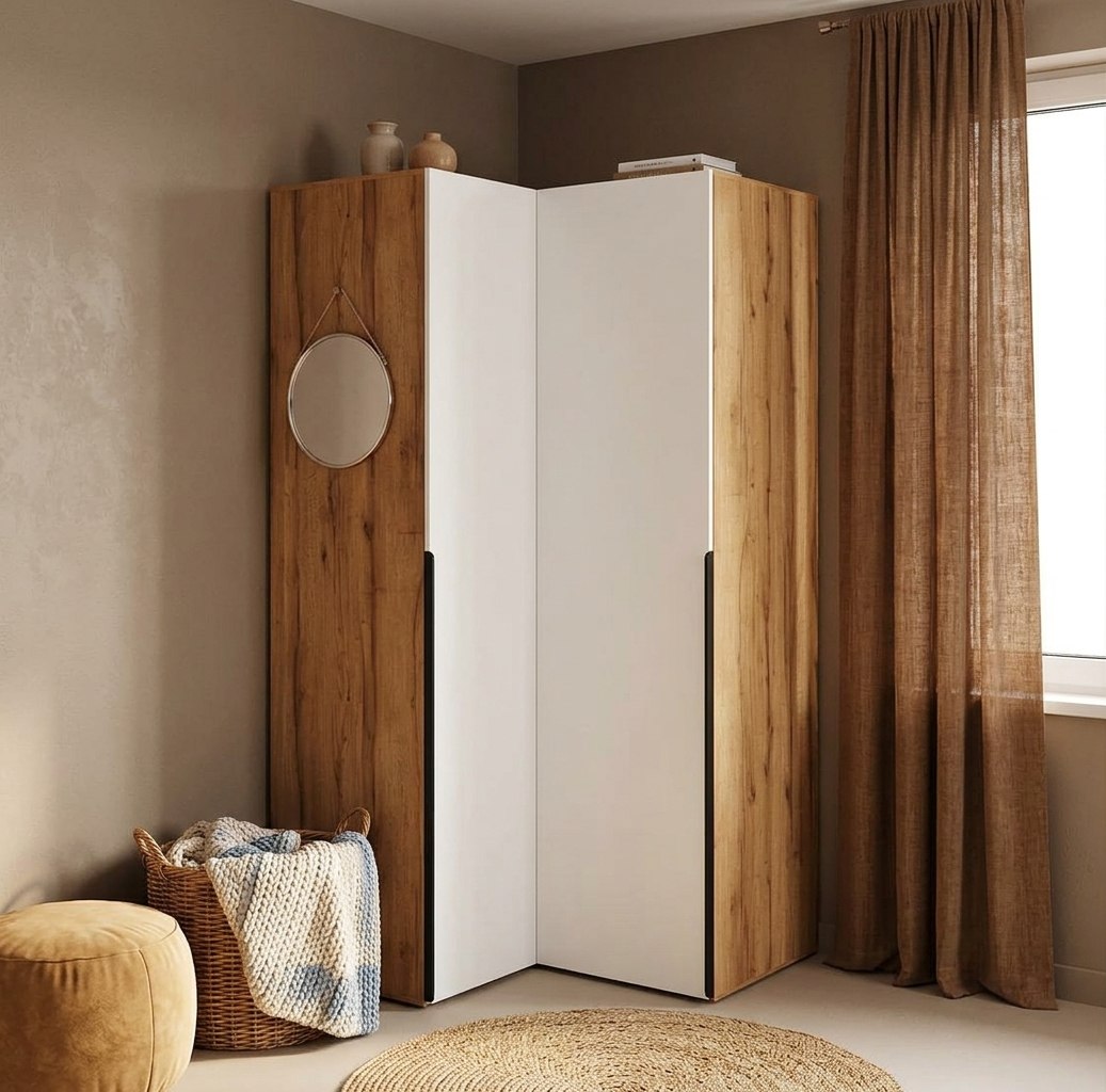 Угловой распашной шкаф + пенал коллекции Брайт Золотистый