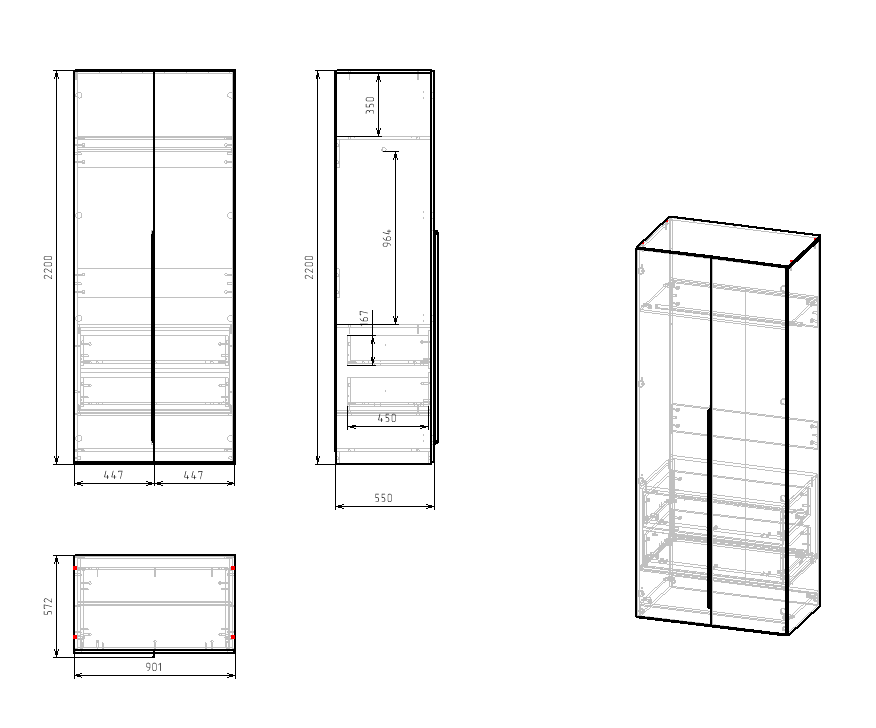 Внутри шкафа расположены вместительный ящик с двумя отделениями, штанга, верхняя и нижняя полки.