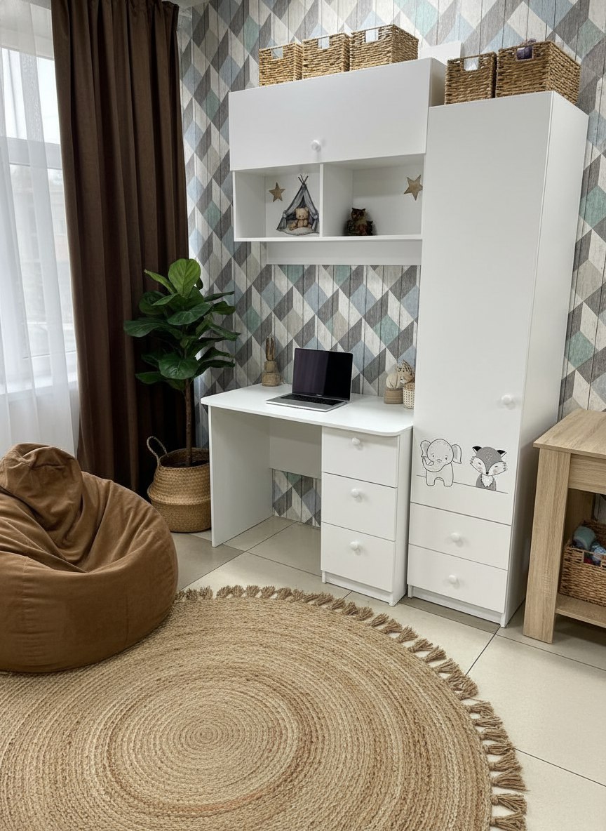 Материал: сертифицированное, качественное, экологически чистое ЛДСП Е0,5 в белом цвете с дизайнерским принтом.